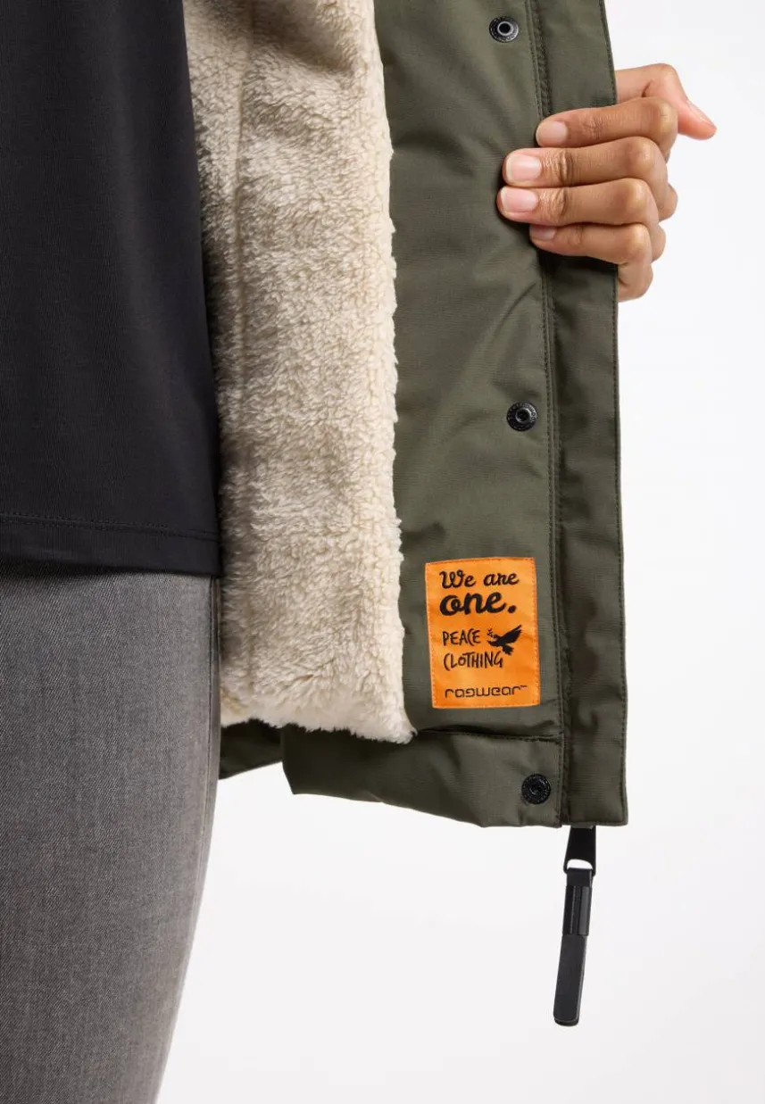 Die vegane Übergangsjacke ‚MONADIS WARM‘ von ragwear begeistert sowohl mit einer tollen Ausstattung als auch Style. Die etwas längere Jacke ist mit einem kuschelige Teddy-Futter gefüttert und hält dich an kalten Herbst- und milderen Wintertagen angenehm warm. Mit der Kordel auf Taillenhöhe kannst du die Silhouette der Jacke ganz individuell anpassen. Eine weitere Kordel befindet sich in der gemütlichen, gefütterten Kapuze. Weitere, praktische Features sind die seitlichen Klappentaschen und die Rippstrickbündchen an den Ärmelabschlüssen.