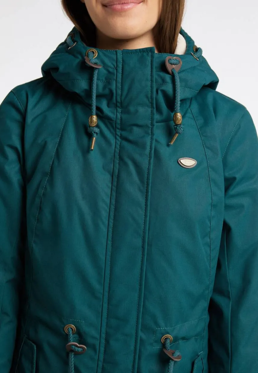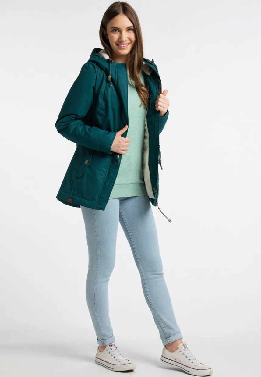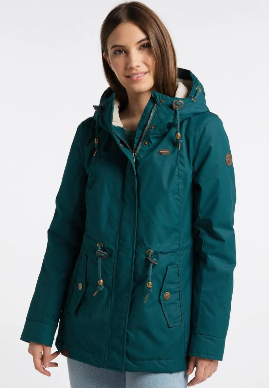 Mit der veganen Jacke ´MONADIS` von ragwear trägst Du einen femininen Freizeitlook für die Übergangszeit. Der gerade Schnitt mit leicht ausgestelltem Saum und der, mit einer Kordel weitenverstellbaren, Taille schmeichelt die längere Jacke Deiner Figur. Auch die hochgeschnittene, mit einem kuscheligen Teddy-Futter gefütterte Kapuze ist mit einer Kordel versehen. Schräge Klappentaschen mit Druckknopf und Label-Applikationen ergänzen das Casual-Design der Übergangsjacke.