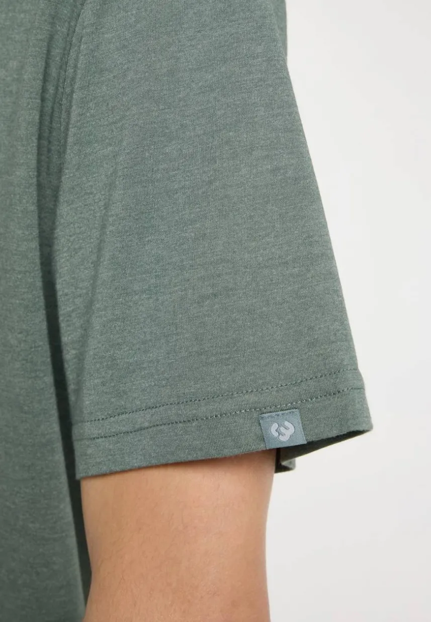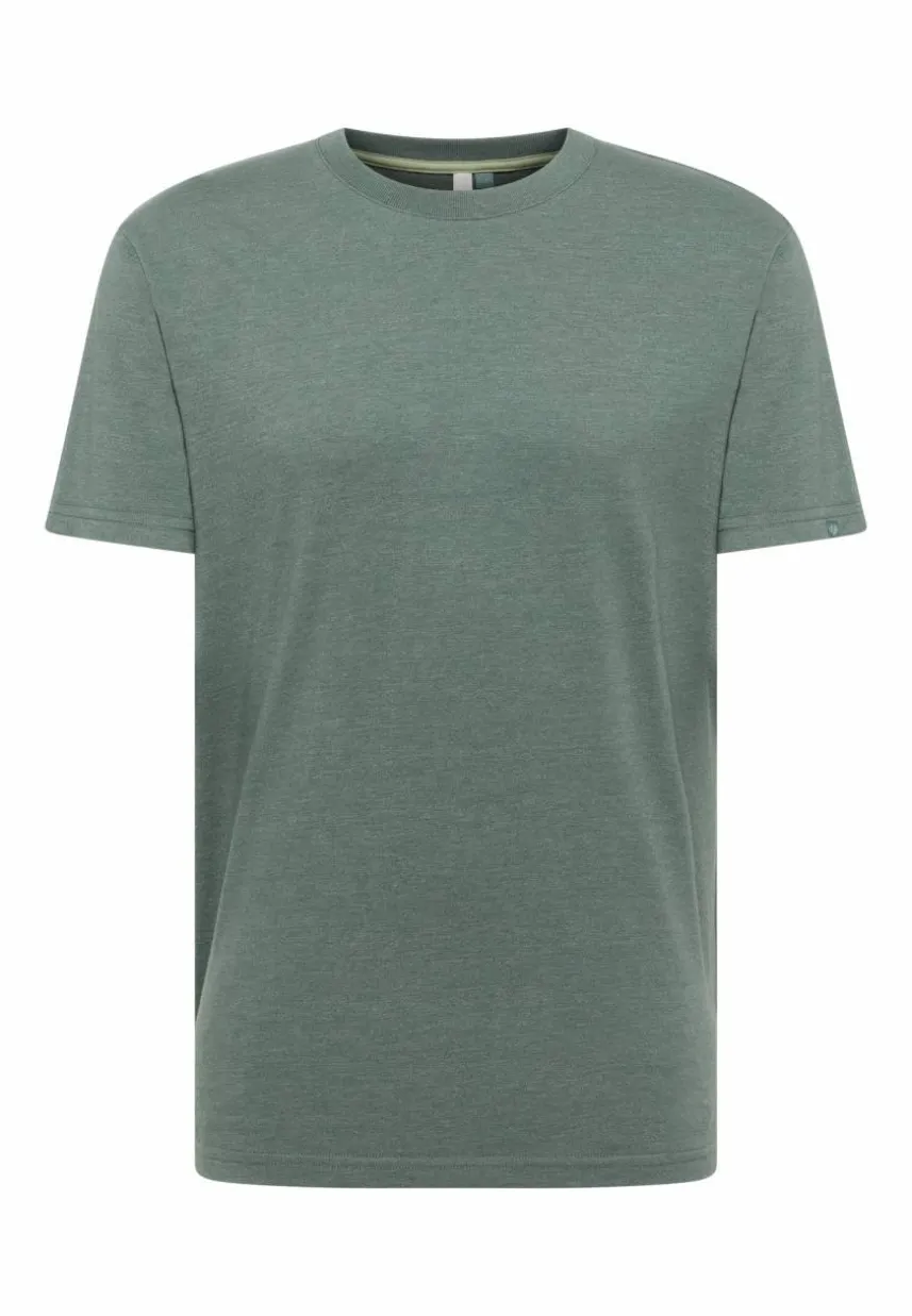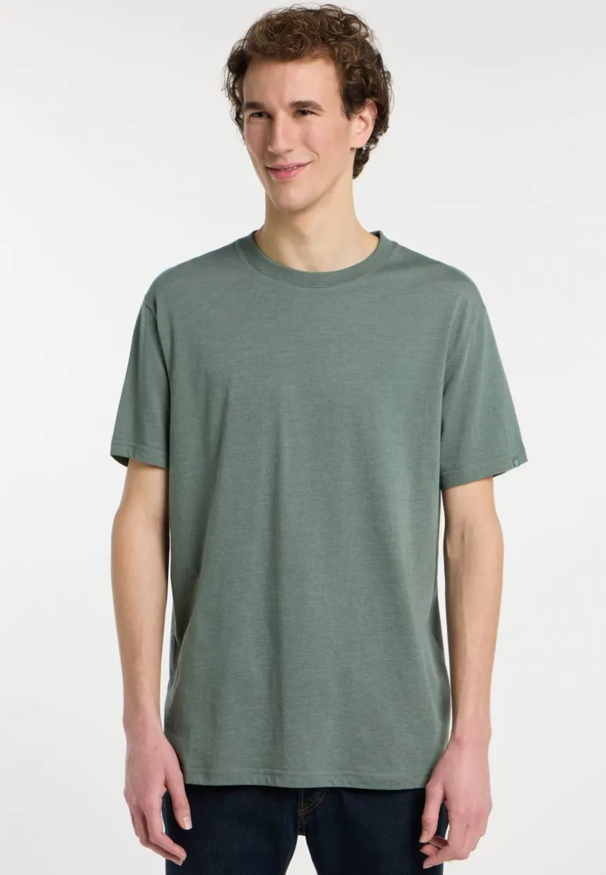 • Veganes, meliertes Basic-T-Shirt mit Rundhalsausschnitt