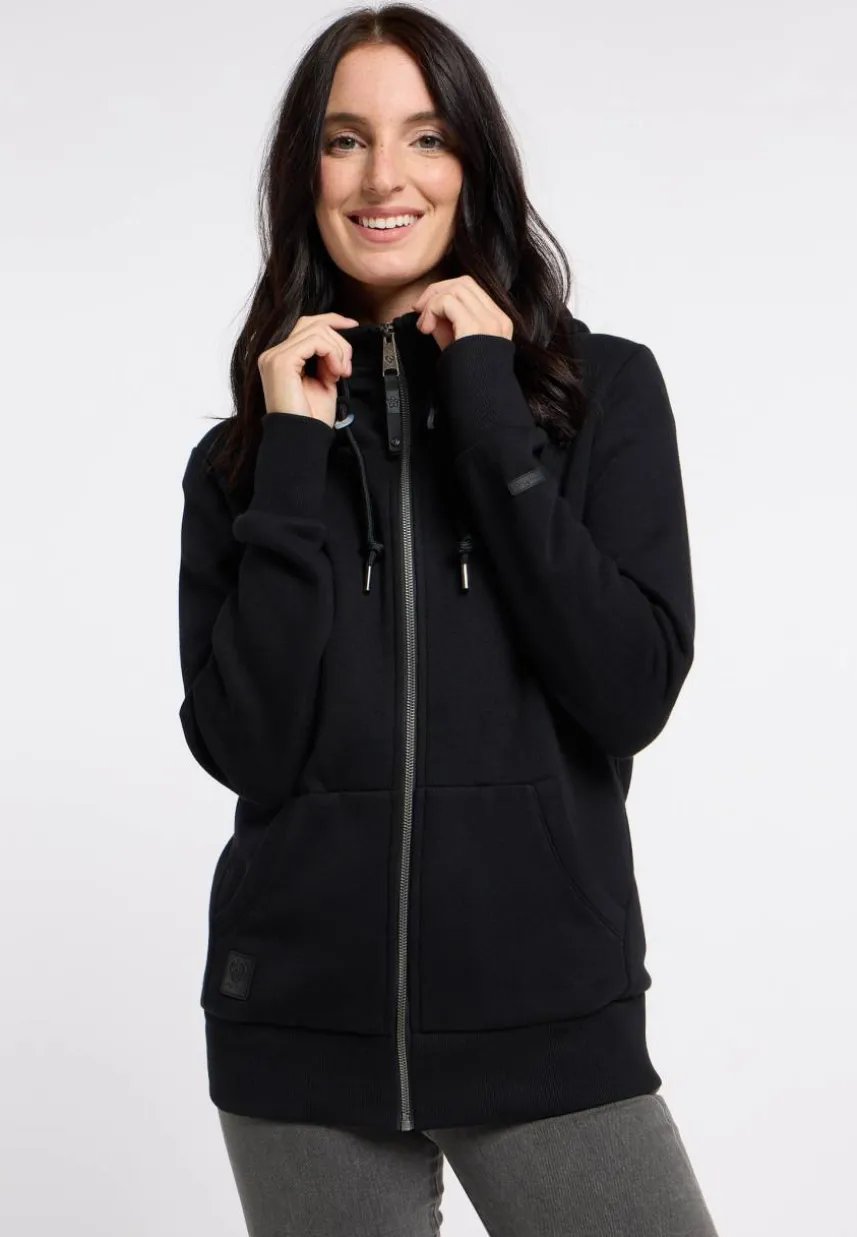 Die vegane Sweatjacke ‚NESKA ZIP COMFY CORE‘ ist dein Traum-Zip-up für kühle Nächte das ganze Jahr über. Der hohe Kragen und die tiefe Kapuze sorgen nicht nur für Wärme, sondern auch für einen tollen Style. Die breiten Rippbündchen an den Ärmeln und am Saum sorgen für guten Halt, während das weiche Material kuschelig und angenehm zu tragen ist. Eine Stofflasche am Reißverschluss erleichtert das Öffnen, auch wenn die Hände von einem Herbstspaziergang kalt sind. Unser Tipp: Die etwas längere Jacke passt gut zu Skinny-Jeans oder einem engen Rock, über den ein langes T-Shirt getragen wird.
