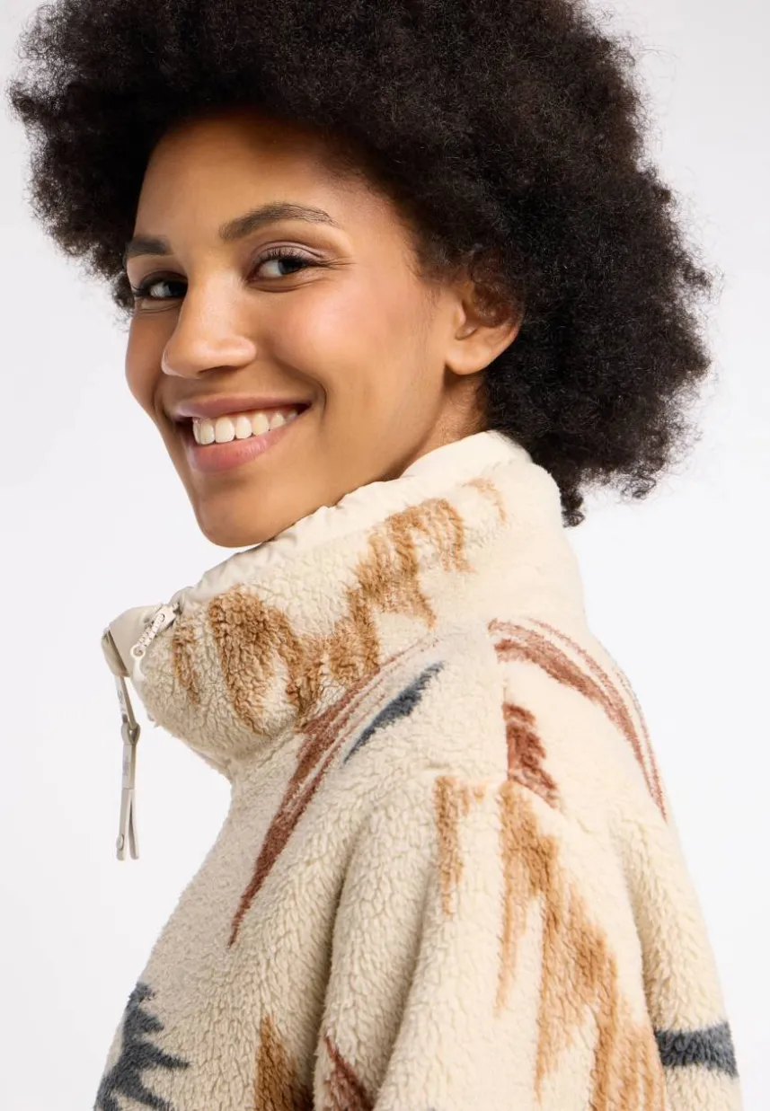 • Vegane Fleecejacke mit Ethno-Muster für trendy Looks in Herbst und Winter