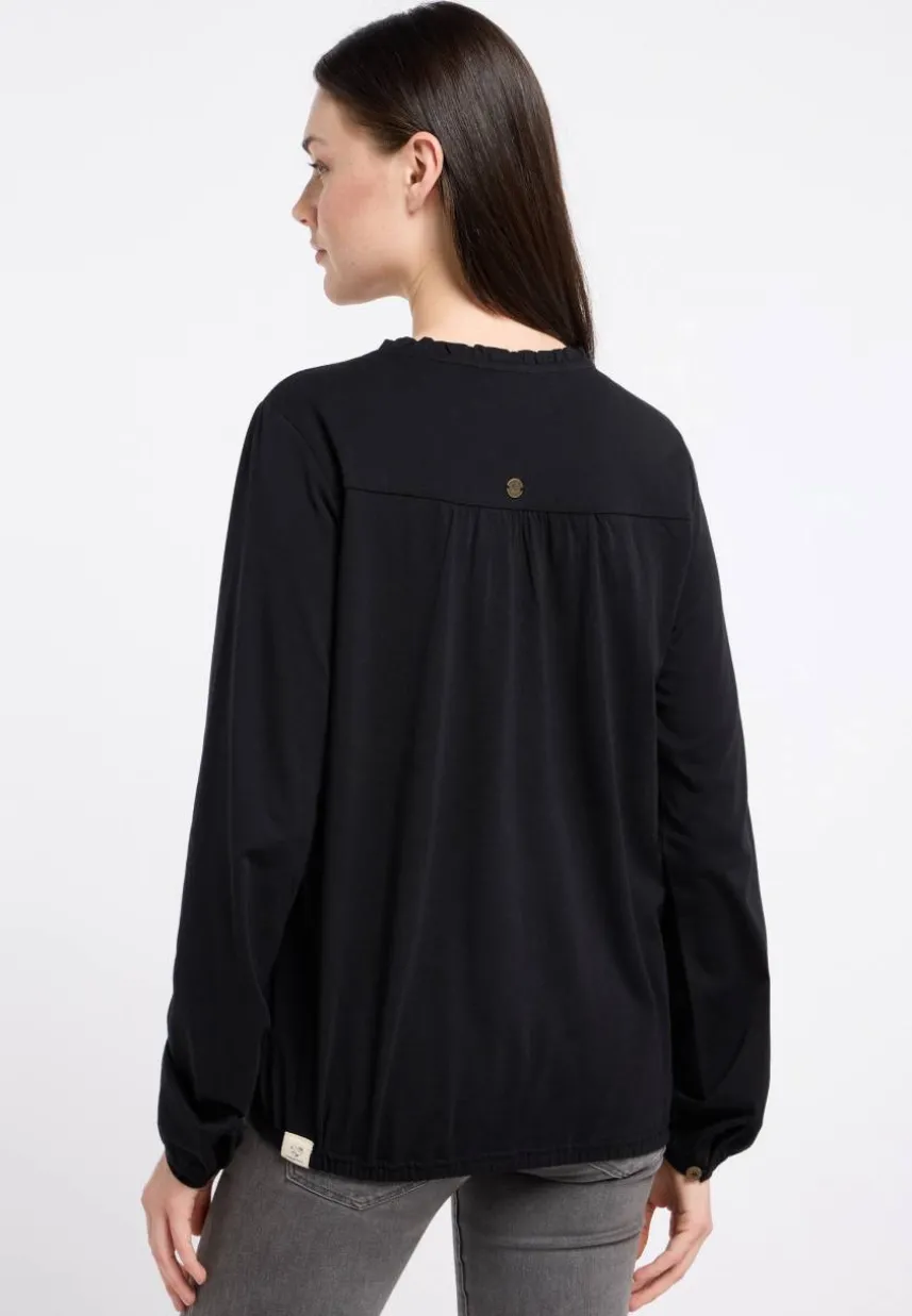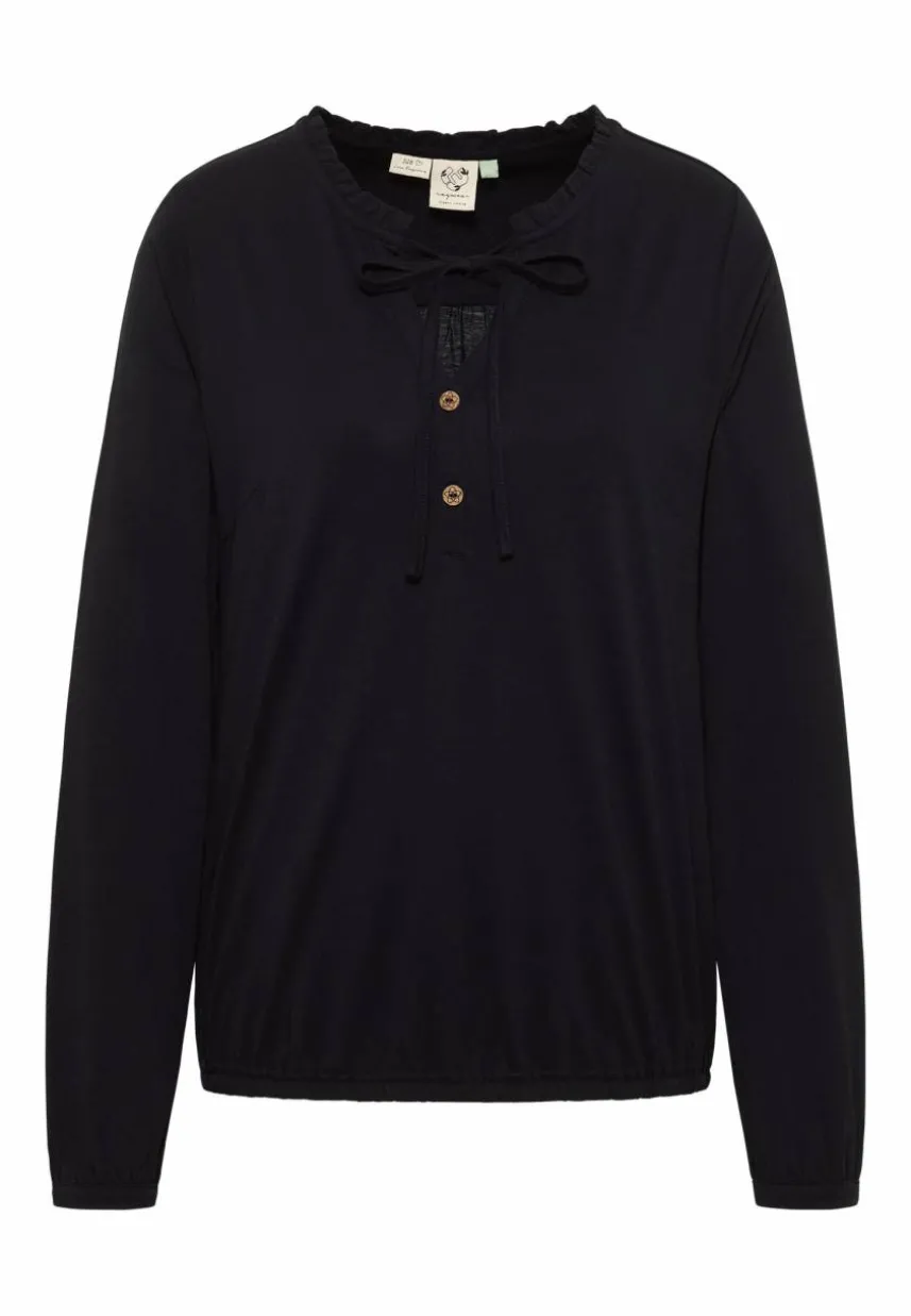 Das elegante und schmeichelhafte ‚ONELIA ORG‘ ist das vegane, langärmelige Top, das du in diesem Herbst brauchst. Das Material ist weich und fällt locker. Die weiten Ärmel enden in einem dünnen Bündchen am Handgelenk. Am Rücken hat es eine leichte Raffung unter der Passe. Der V-Ausschnitt mit Knopfleiste wird durch einen Kordelzug und Rüschen am Halsausschnitt betont. Super modisch und perfekt für den Alltag oder zum Ausgehen.