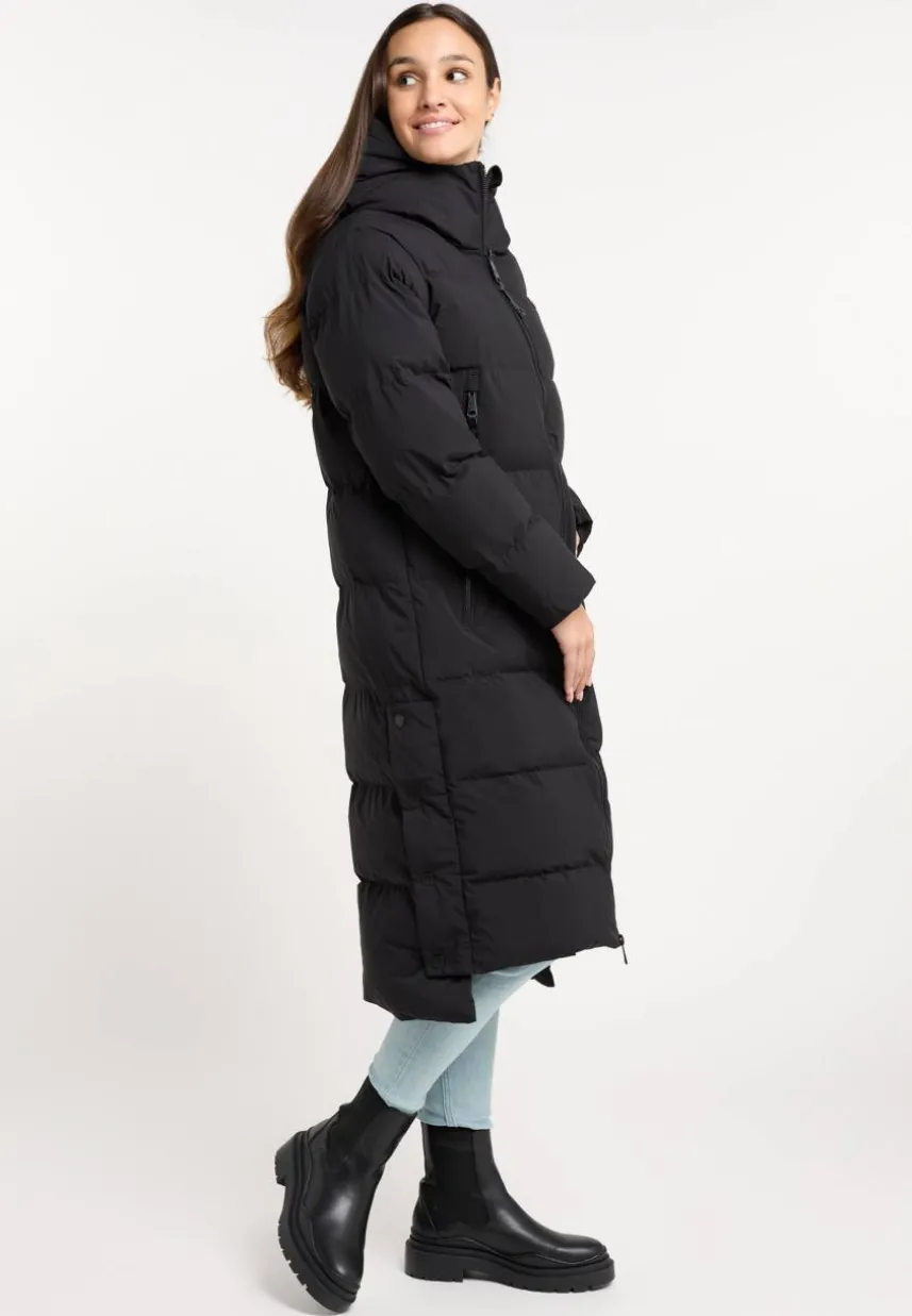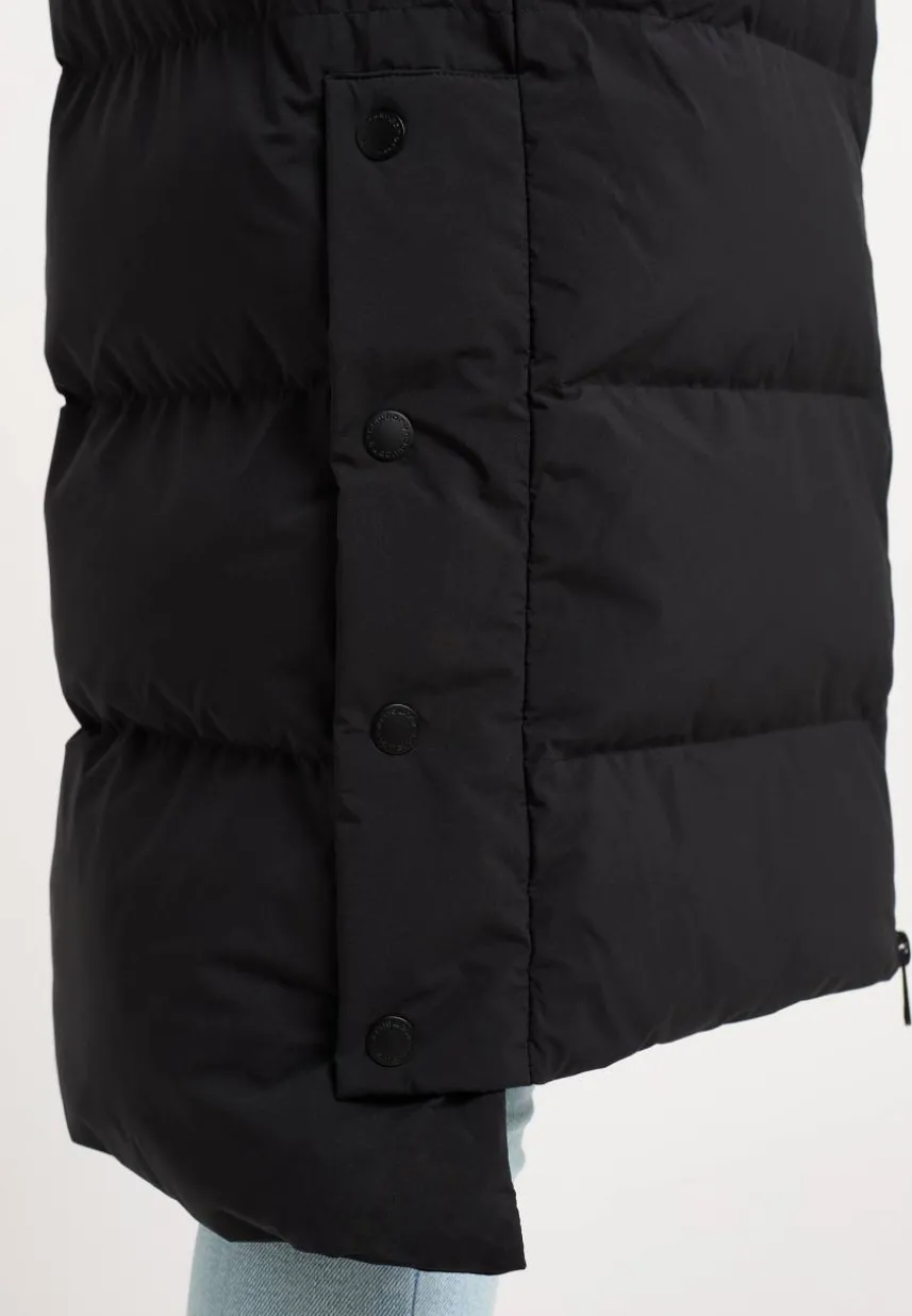 • Langer, veganer Steppmantel mit Kapuze für den Winter