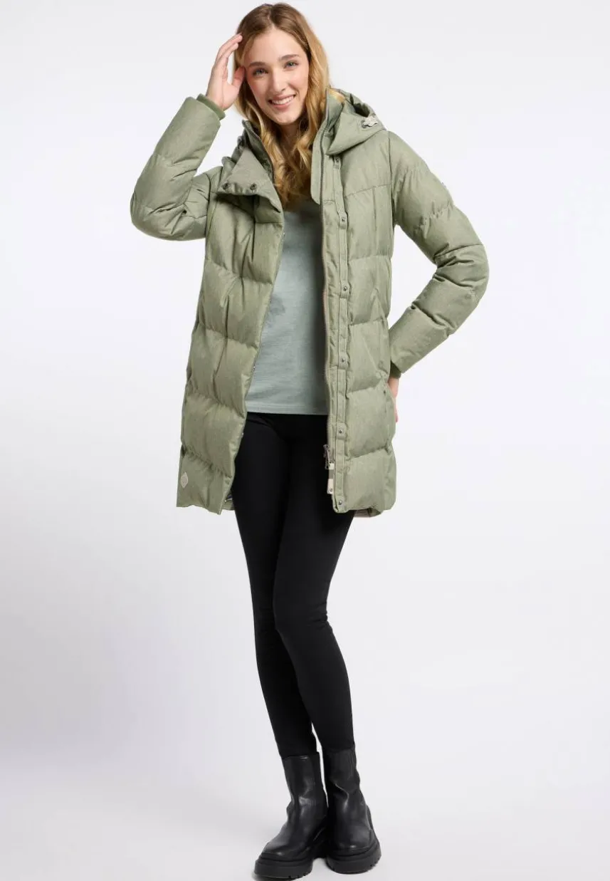 Der vegane Wintermantel ‚PAVLA‘ von ragwear ist eine unserer wärmsten Jacken. Dick gefüttert, mit Steppungen und femininen Schnitt trotzt du in diesem Mantel den ganzen Tag der Kälte. Damit Hals und Kopf geschützt sind, haben wir ihn sowohl mit Stehkragen, als auch mit Kapuze mit Kordel konzipiert. Die schräg verlaufenden Blende schützt den Reißverschluss vor eintretendem Wind und verleiht dem Mantel etwas Besonderes. Deine Hände kannst du tief in den seitlichen Eingrifftaschen mit Reißverschluss vergraben.