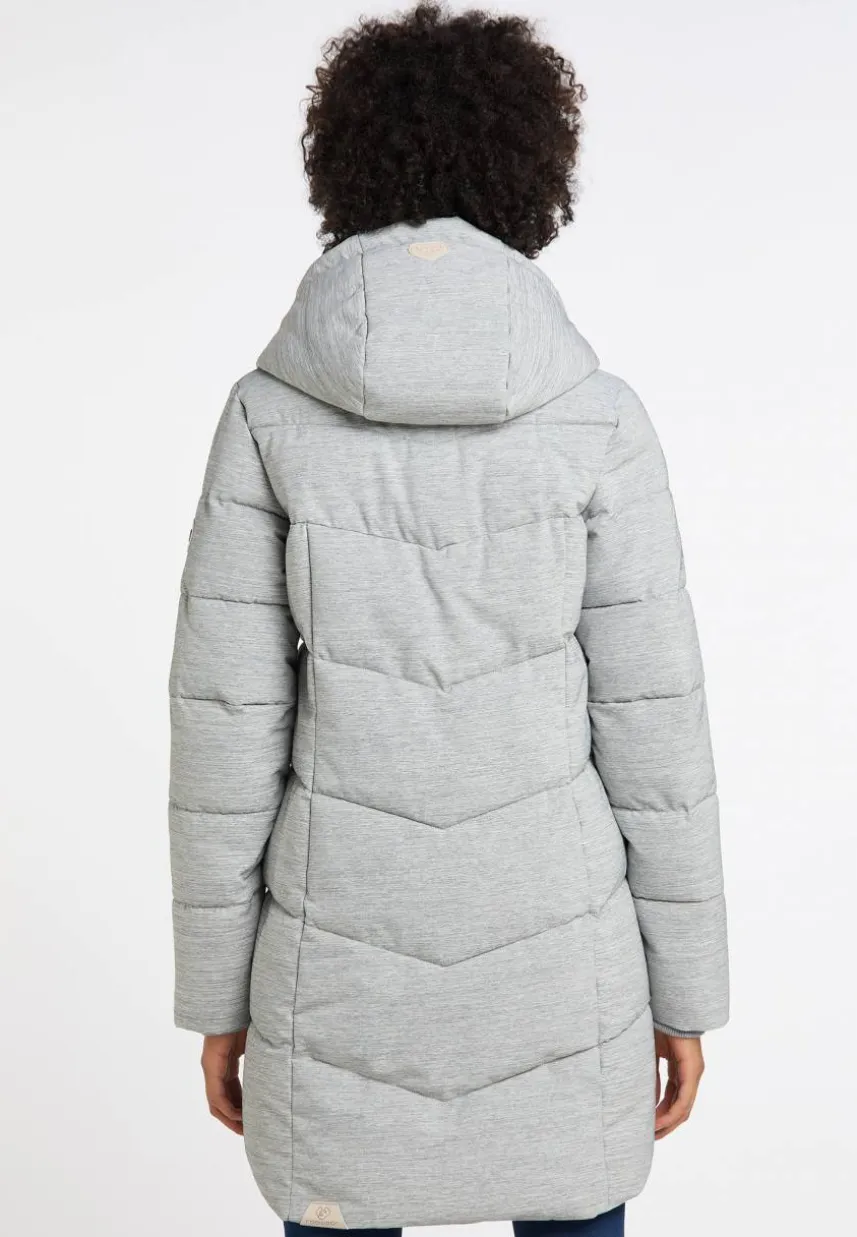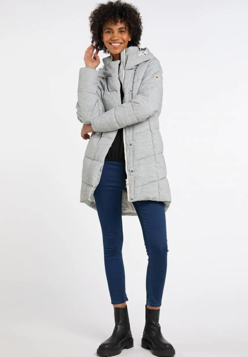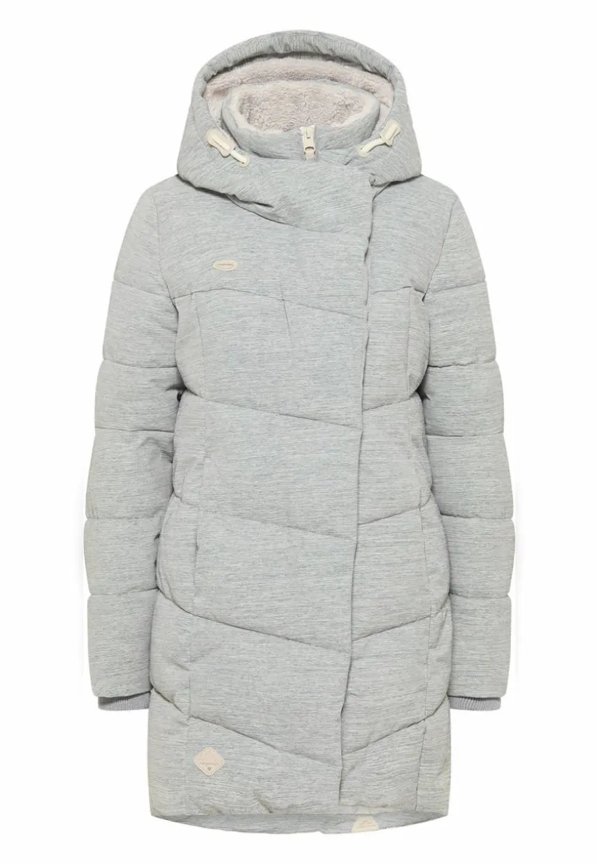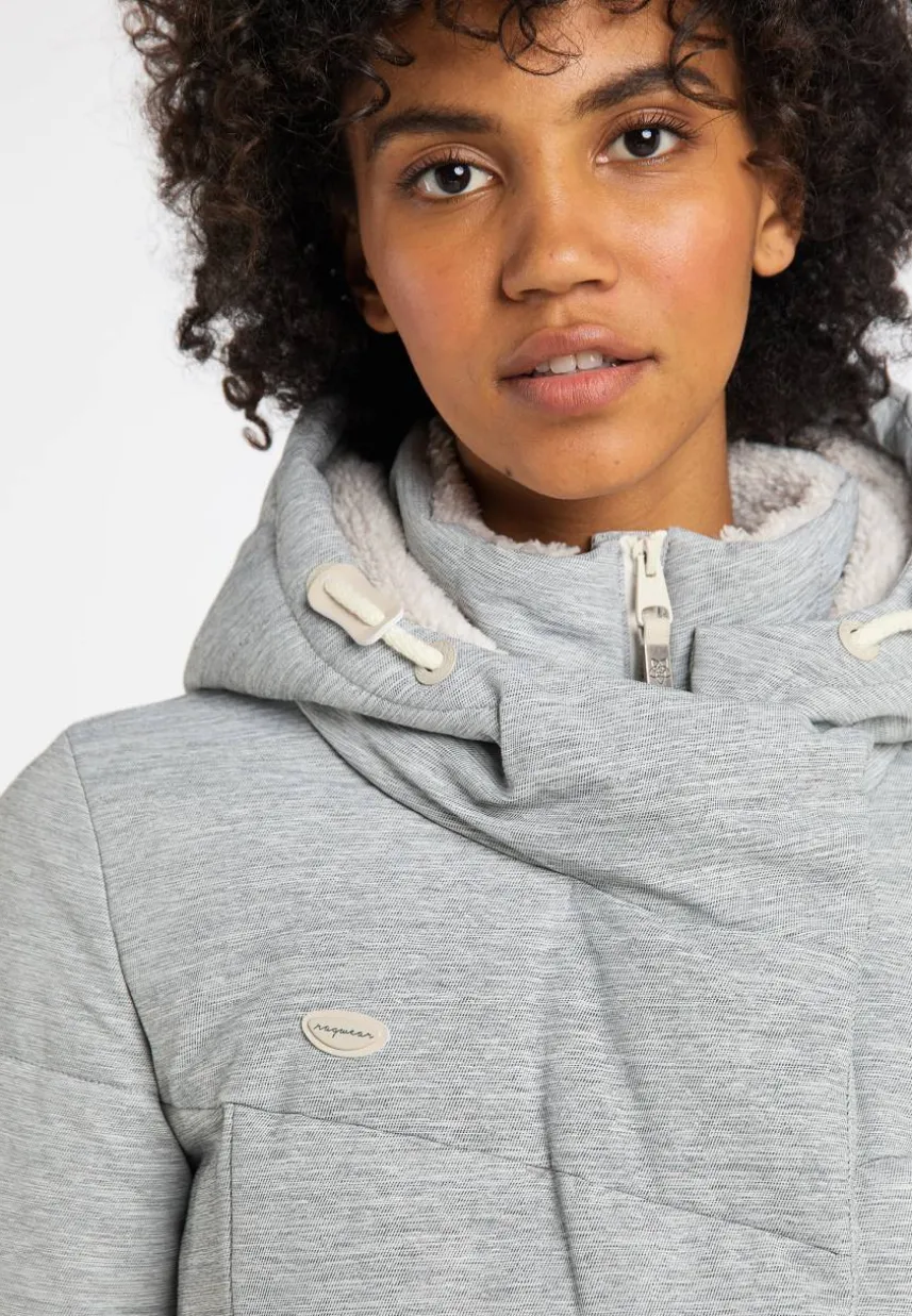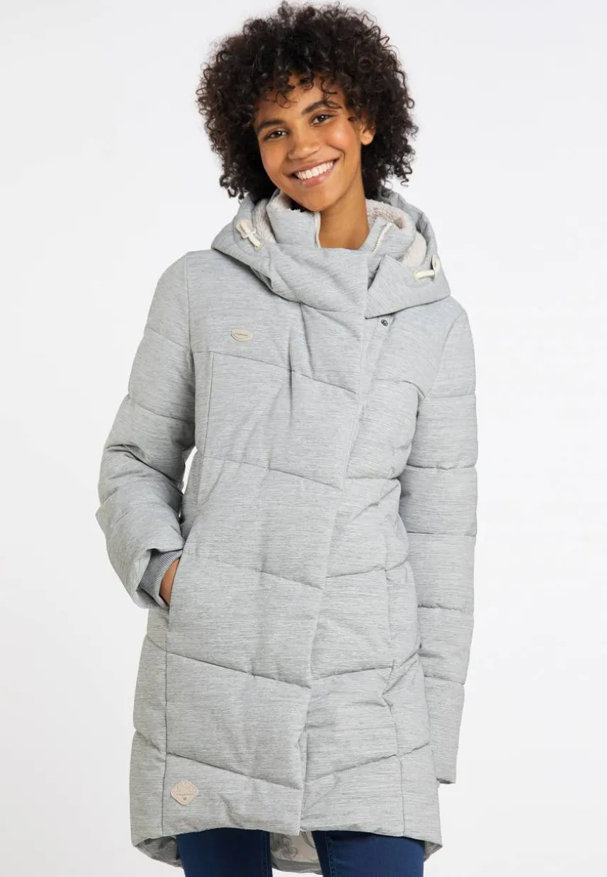 Mit dem warmen Wintermantel ´PAVLA` von ragwear bist Du stylisch und winterlich gekleidet. Er ist dick gefüttert, gesteppt, bequem geschnitten und am Saum ausgestellt, sowie hinten etwas verlängert. Sowohl der Stehkragen, als auch die Kapuze sind mit kuscheligem Teddy-Futter gefüttert. Der Reißverschluss ist mit einer schräg verlaufenden Blende versehen, die dem Mantel etwas Besonderes verleiht. Ergänzt wird das Design mit seitlichen Eingrifftaschen mit Reißverschluss und den typischen Label-Applikationen.