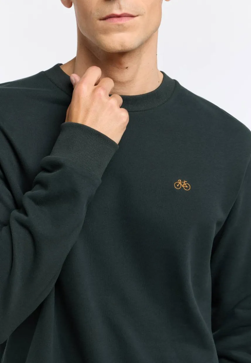 • Klassischer Crewneck-Sweater mit dezenter Fahrrad-Stickerei