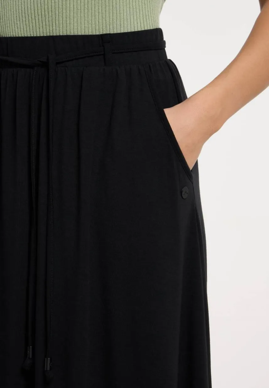 • Veganer, knielanger Rock mit seitlichen Eingrifftaschen für den Sommer