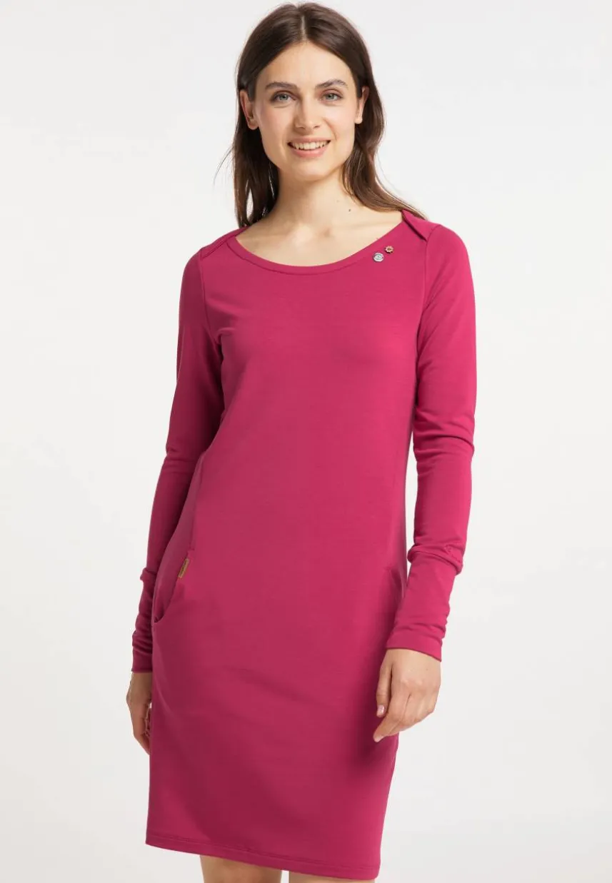 Das vegane Kleid ´RIVER SWEAT` von ragwear ist absolut herbst- und wintertauglich. Der leicht taillierte Schnitt schmeichelt deinen Kurven und ist angenehm zu tragen. Das schlichte, langärmelige Kleid wird mit kleinen Details, wie Dekoknöpfen am U-Boot-Ausschnitt und einem Label-Patch an einer der seitlichen Eingrifftaschen akzentuiert. Sportlich gestylt mit Sneakern und Bomberjacke oder lässig mit Boots und Jeansjacke – dieses Kleid macht alles mit.