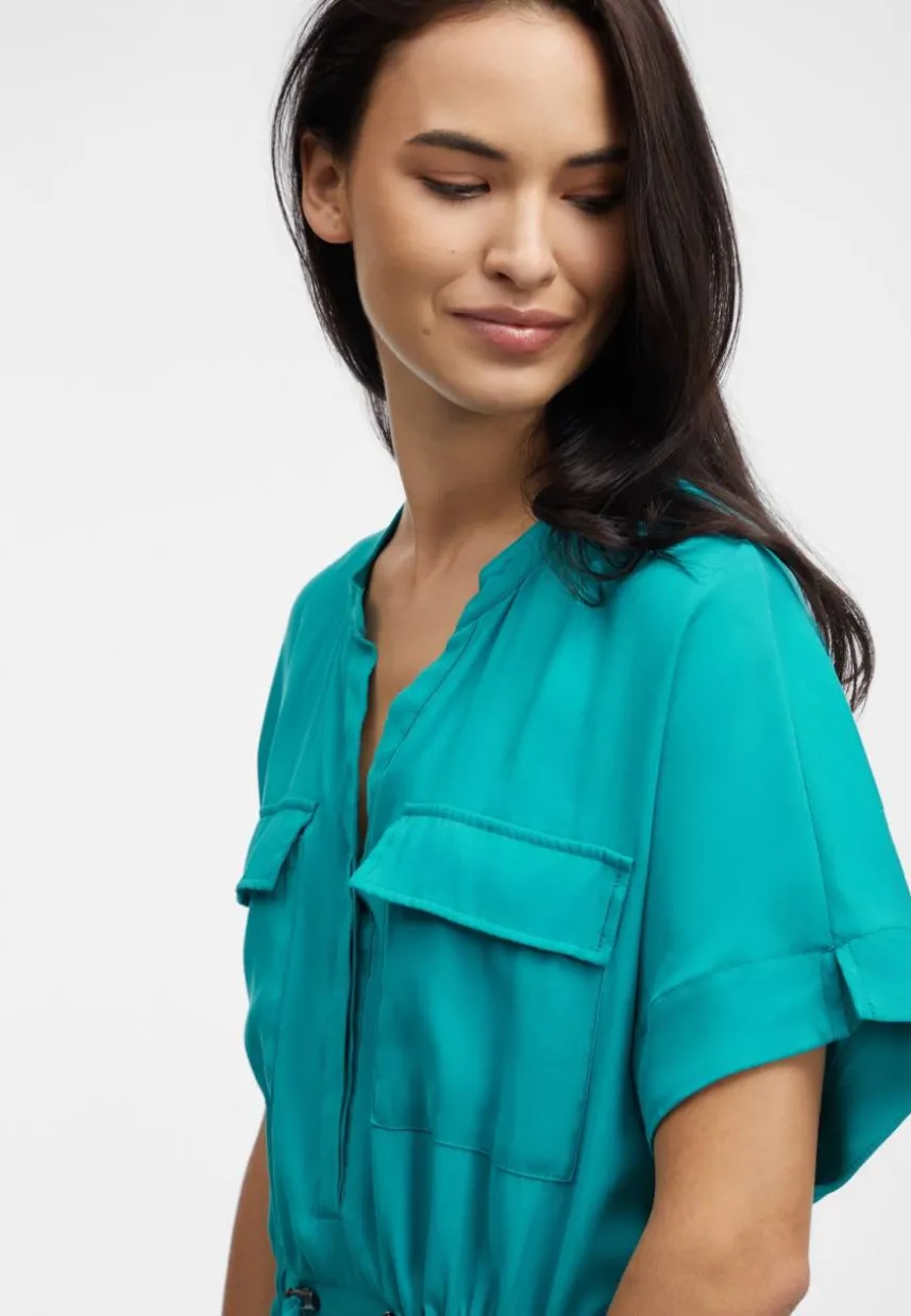 • Sommerliches Blusenkleid mit Taschen im Brustbereich für jeden Tag