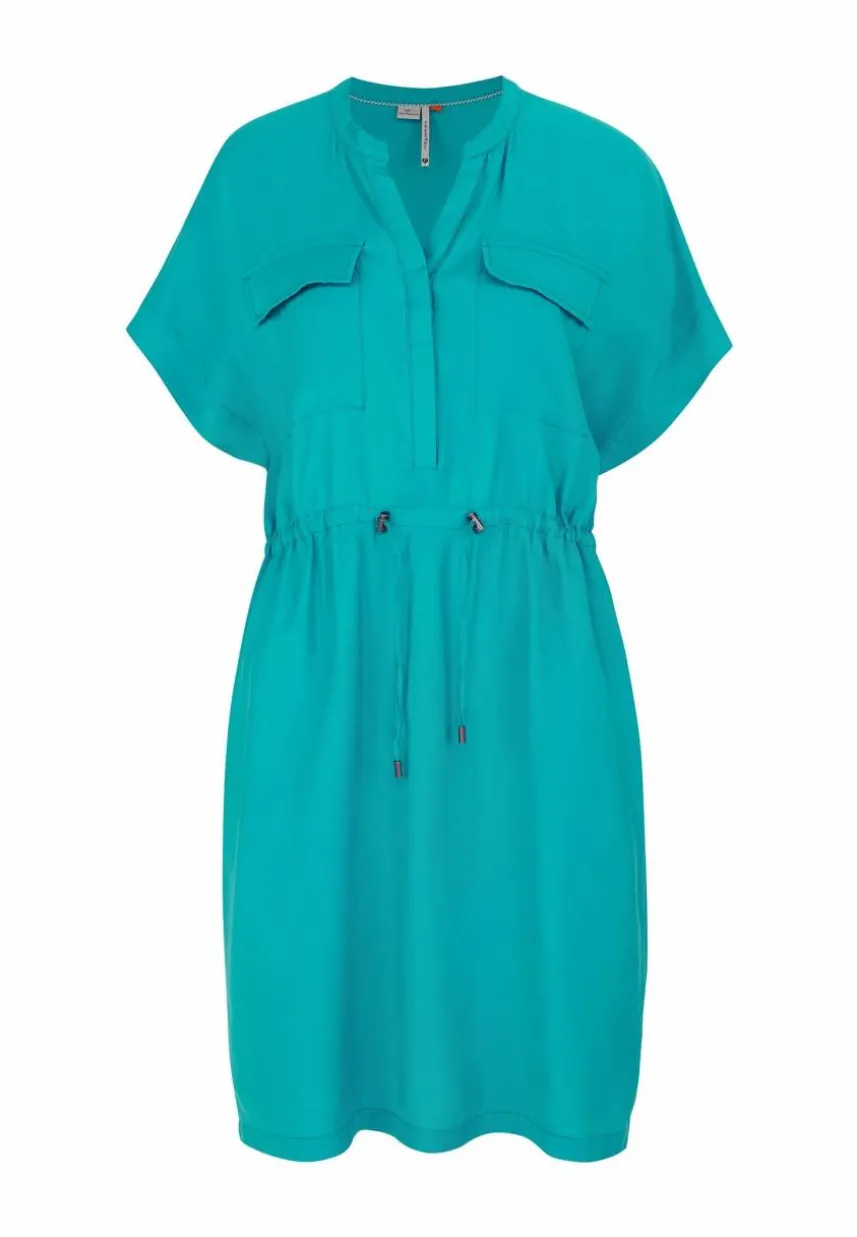 Das vegane, sommerliche Blusenkleid ‚ROISA‘ ist perfekt für Sommertage. Ein Kordelzug mit Bindebändern in der Taille ermöglicht eine optimale Anpassung an deine Figur. Kurze Ärmel und ein Henly-Ausschnitt sorgen für idealen Komfort und Stil. Es hat Taschen in den Seitennähten und zusätzliche Taschen über der Brust. Der Saum ist gerade mit kurzen Seitenschlitzen.