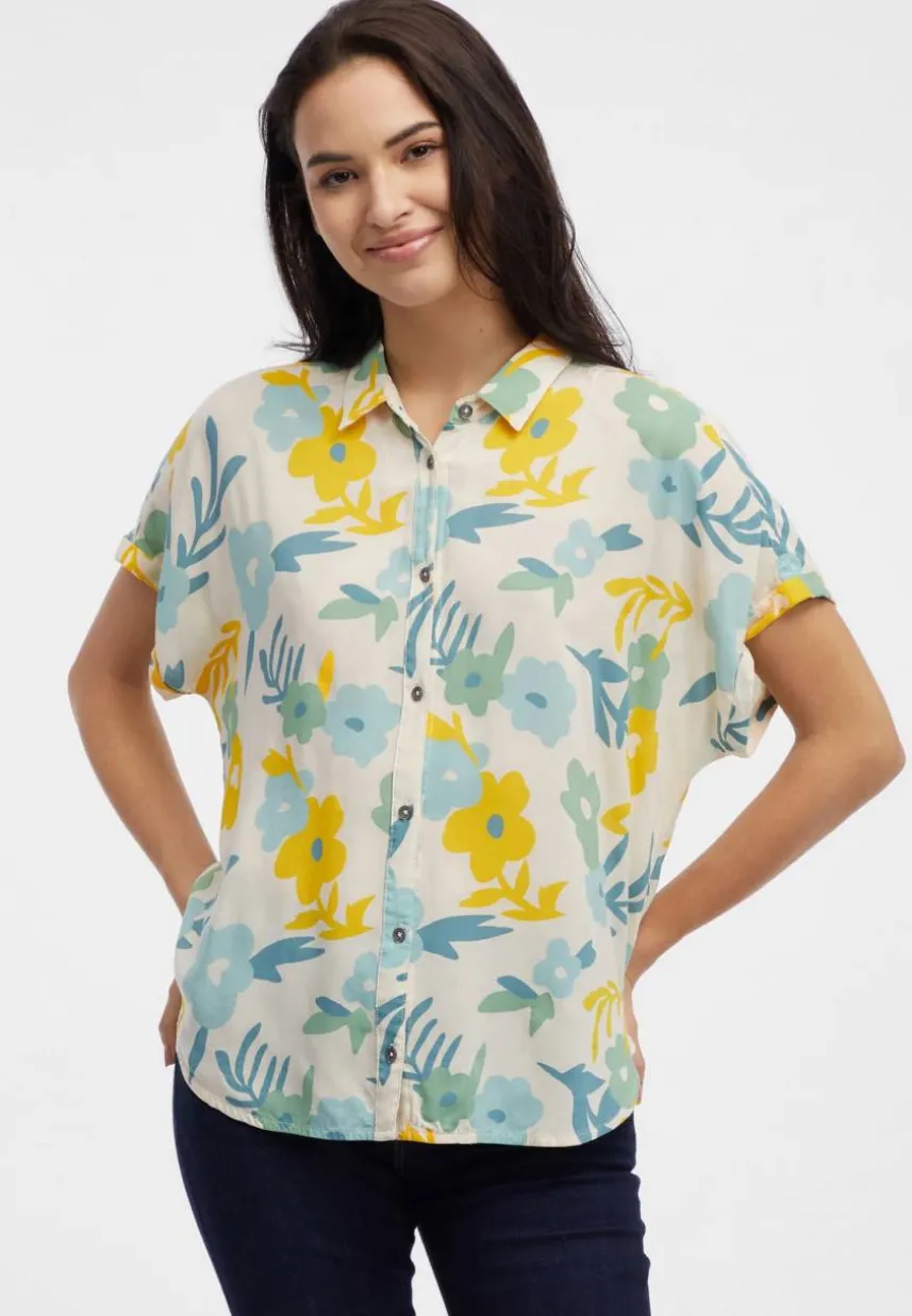Die vegane Bluse ‚ROTHEA‘ von ragwear verbindet Style mit Komfort. Das Blumenmuster-Design und der klassische Kent-Kragen runden den Look modisch ab. Das Top ist luftig geschnitten, mit einer Knopfleiste sowie Fledermausärmeln mit Umschlag. In Kombination mit der weich fließenden Qualität des Stoffes ist diese Sommer-Bluse perfekt für heiße Tage geeignet.