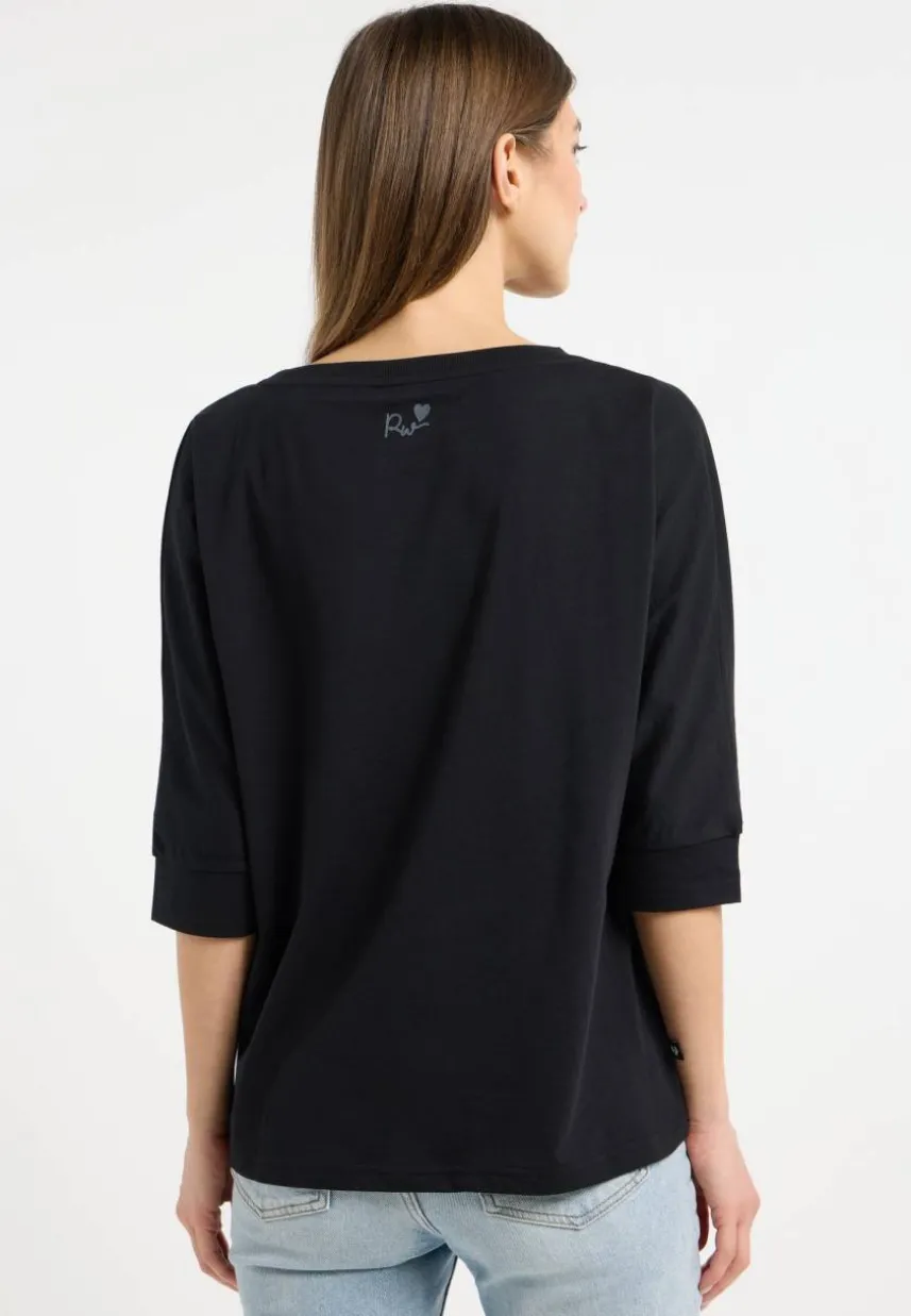 • Überschnittene Schultern und ellbogenlange Ärmeln mit Bündchen