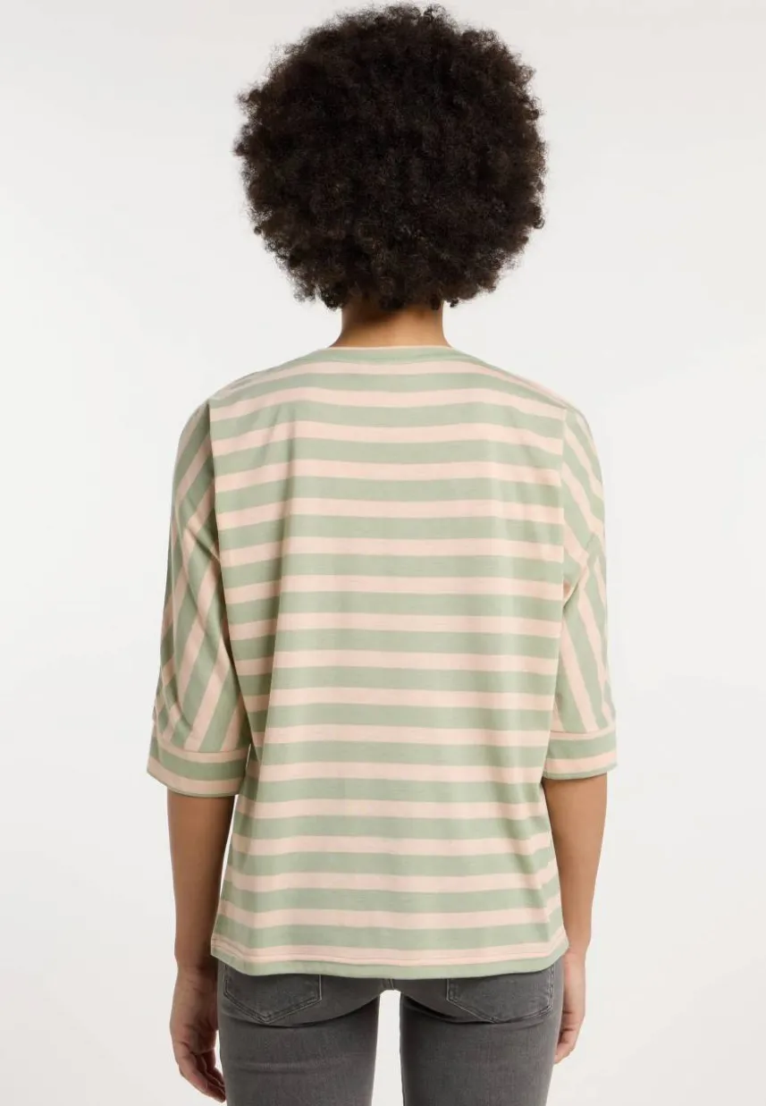 Das fröhliche Streifenmuster und der lockere Schnitt machen das vegane Top SHIMONA STRIPES von ragwear zu einem vielseitigen Lieblingsstück. Das lässige Design mit überschnittenen Schultern und ellbogenlangen Ärmeln sorgt für einen entspannten Style. Dank des weichen Jersey-Materials trägt sich das Top besonders angenehm und ist ideal für die Übergangszeit.