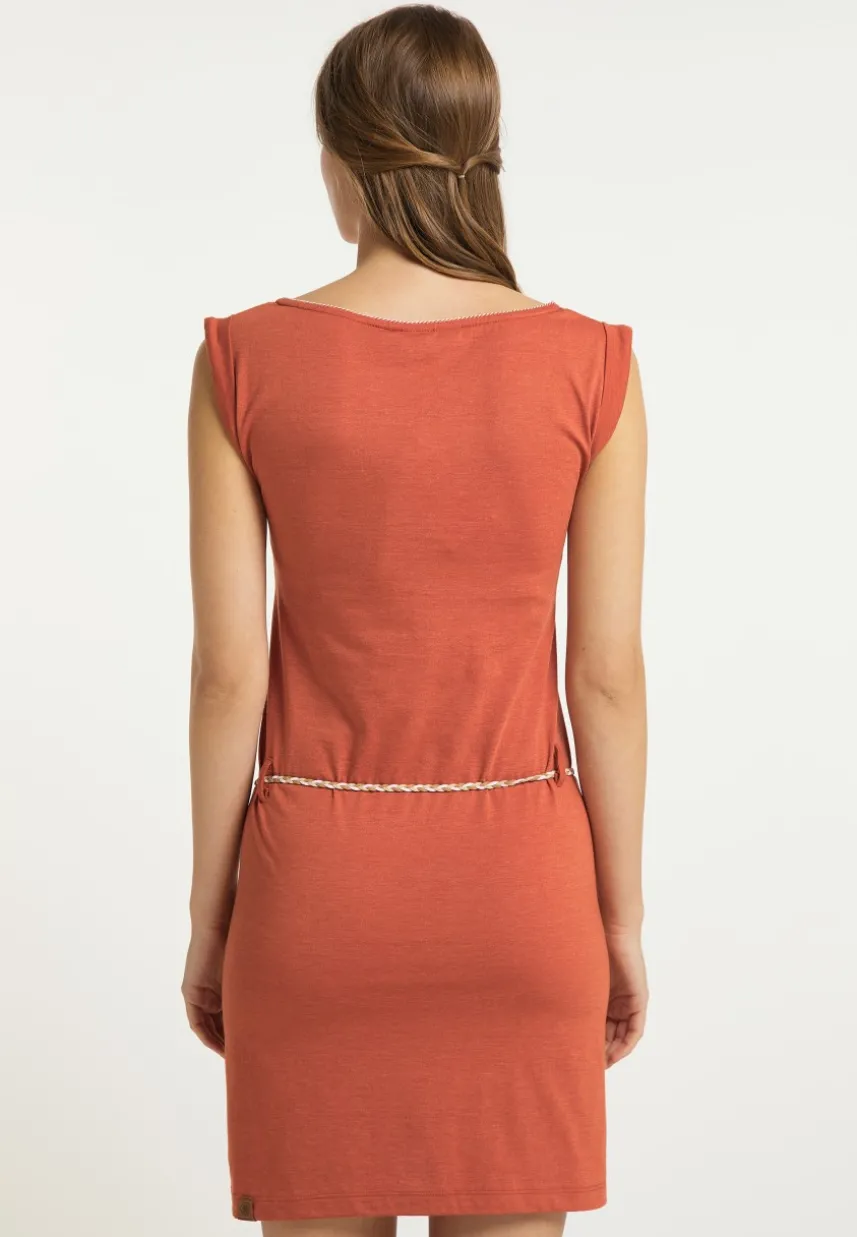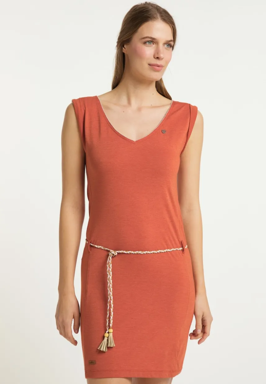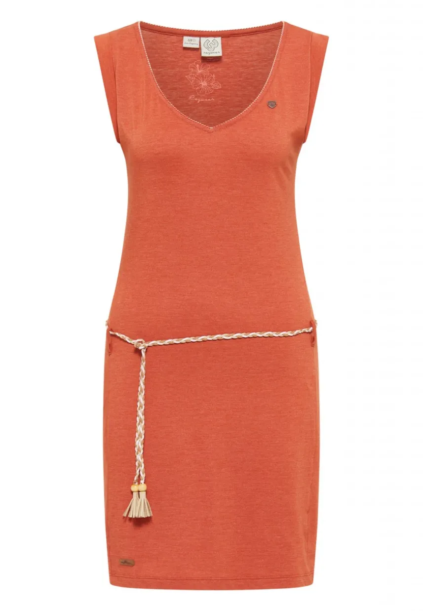 Das Kleid ´SLAVKA` von ragwear ist ein charmantes Casual-Piece für warme Tage. Ein weiter V-Ausschnitt mit Ziernaht, kurze Flügelärmel und ein dünner Flechtgürtel auf Hüfthohe betonen Deine weiblichen Formen. Das Material ist leicht und luftig und eignet sich perfekt für den Sommer. Mit Sandalen oder Ballerinas kreierst du ein süßes Outfit.