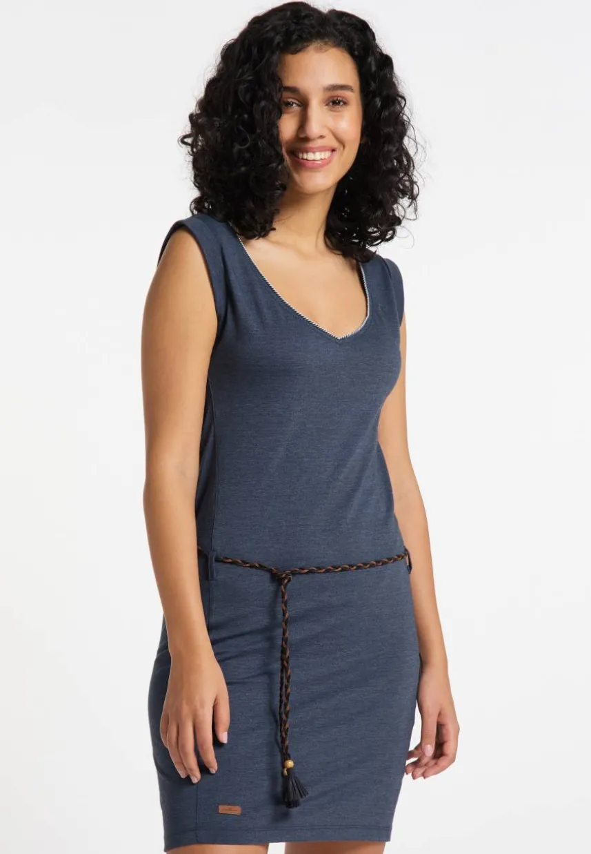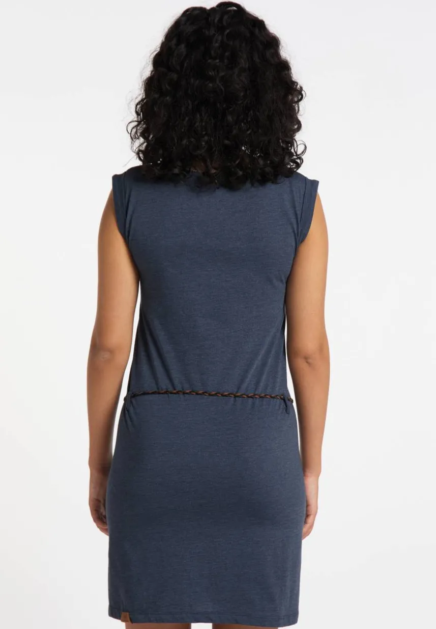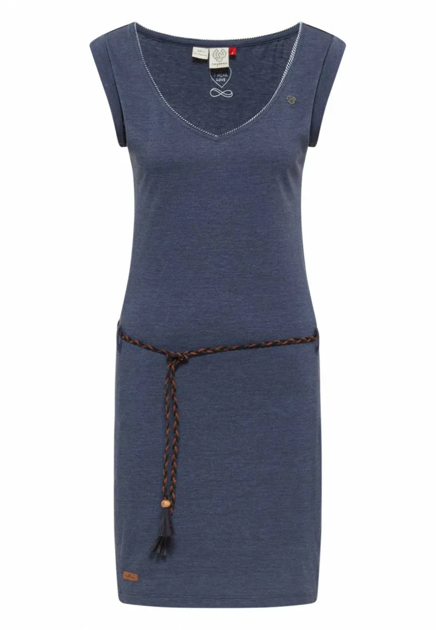 Das vegane Kleid ´SLAVKA` von ragwear ist ein unkompliziertes Casual-Piece. Ein weiter V-Ausschnitt mit Dekoknopf betont deinen Hals, ein dünner Flechtgürtel auf Hüfthohe und das angenehme Jersey-Material betonen Deine weiblichen Formen ohne einzuengen. Die Abschlüsse der kurzen Ärmel sind umgekrempelt. Je nach Styling kreierst Du mit diesem Kleid sowohl lässige Freizeit- als auch coole Partyoutfits.