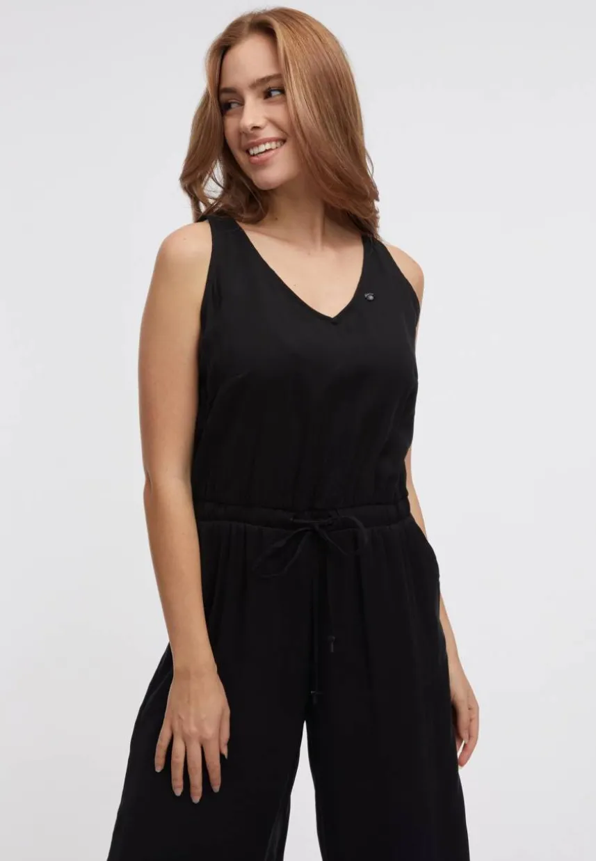 Der vegane Jumpsuit ‚SUKY‘ von ragwear ist ein modisches Highlight für den Sommer. Mit weitem Bein in 3/4-Länge, seitlichen Eingrifftaschen und breitem Bund mit Kordel in der Taille wirkt der Overall elegant und sommerlich. Das Oberteil mit breiten Trägern hat einen V-Ausschnitt und eine Kellerfalte. Und besonders der große Rückenausschnitt fällt ins Auge. Style diesen Playsuit elegant fürs Büro oder casual mit Sneakern und Sweatjacke.