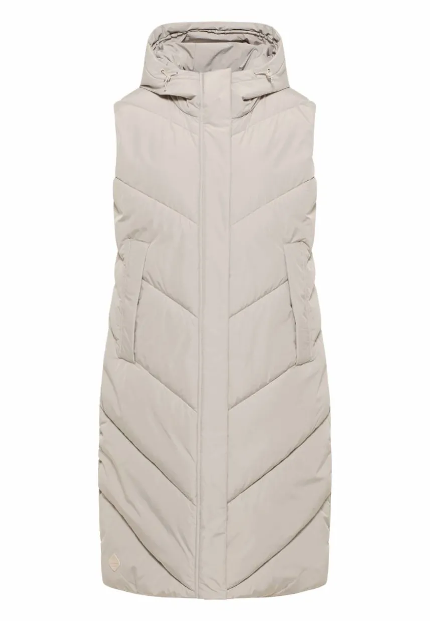 In der gesteppten, veganen Weste ‚SUMINKA VEST‘ von ragwear kommst Du stylisch und warm durch windige Herbst- und kalte Wintertage. Die dick gefütterte Weste ist knielang geschnitten und liegt damit voll im Trend. Eine große, vorn hoch geschnittene Kapuze mit Tunnelzug schützt Dir Ohren, Hals und Kopf. Der gerade, bequeme Schnitt wirkt, dank der schräg zulaufenden Steppung, trotzdem feminin. Eine Reißverschlussblende und große, schräge Paspeltaschen mit Druckknöpfen bringen extra Komfort in Dein Outfit.