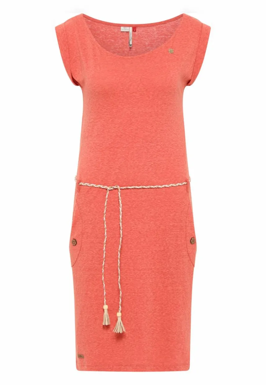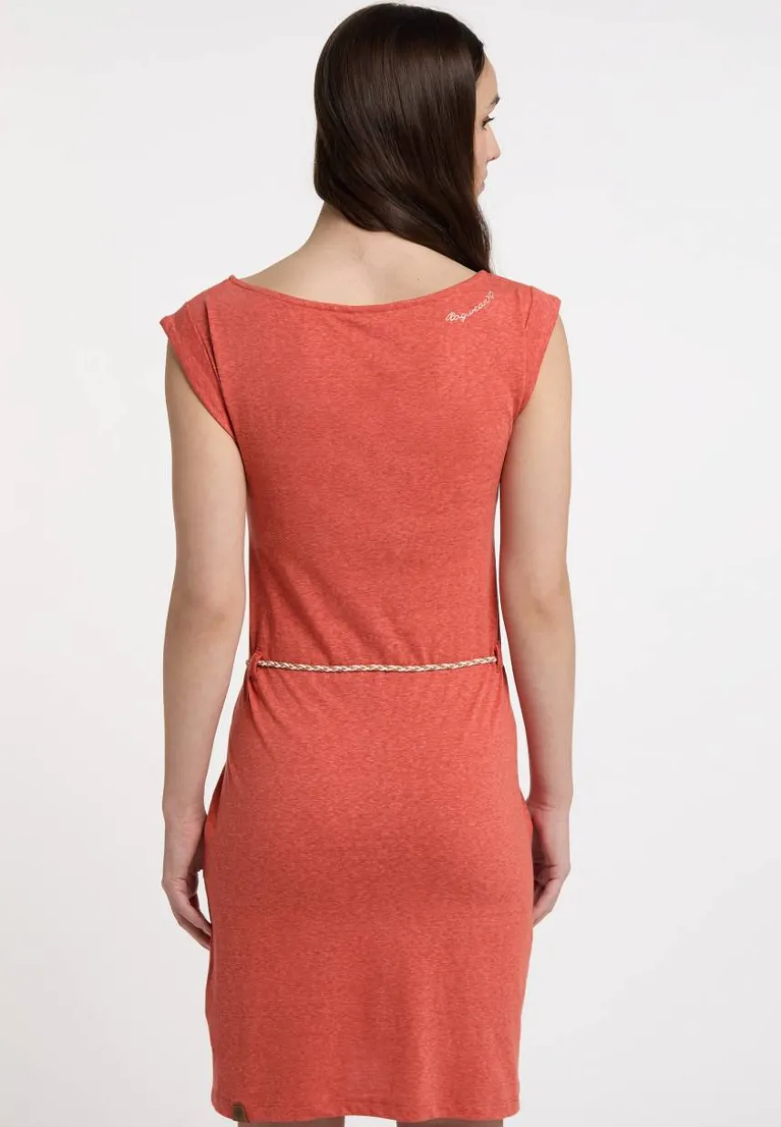 Das vegane Sommerkleid 'TAGG' von ragwear ist ein Must-Have für den Sommer. Das einfache, sportliche Kleid überzeugt mit einem großen Rundhalsausschnitt und entspannten Taschen. Den bequemen Schnitt akzentuiert ein dünner Flechtgürtel auf Hüfthöhe. Auch dank der weichen Qualität wird das kurze, melierte Kleid sofort zu einem Lieblingsteil. Unser Tipp: Kombiniere es mit weißen Sneakern.