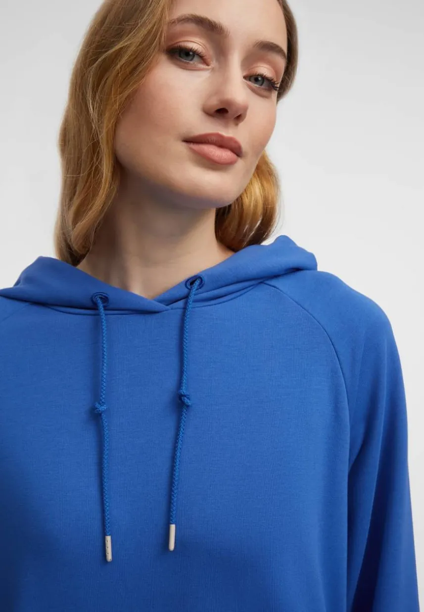 • Bequemer, weiter Schnitt mit Rippstrickbündchen an Ärmeln und Saum