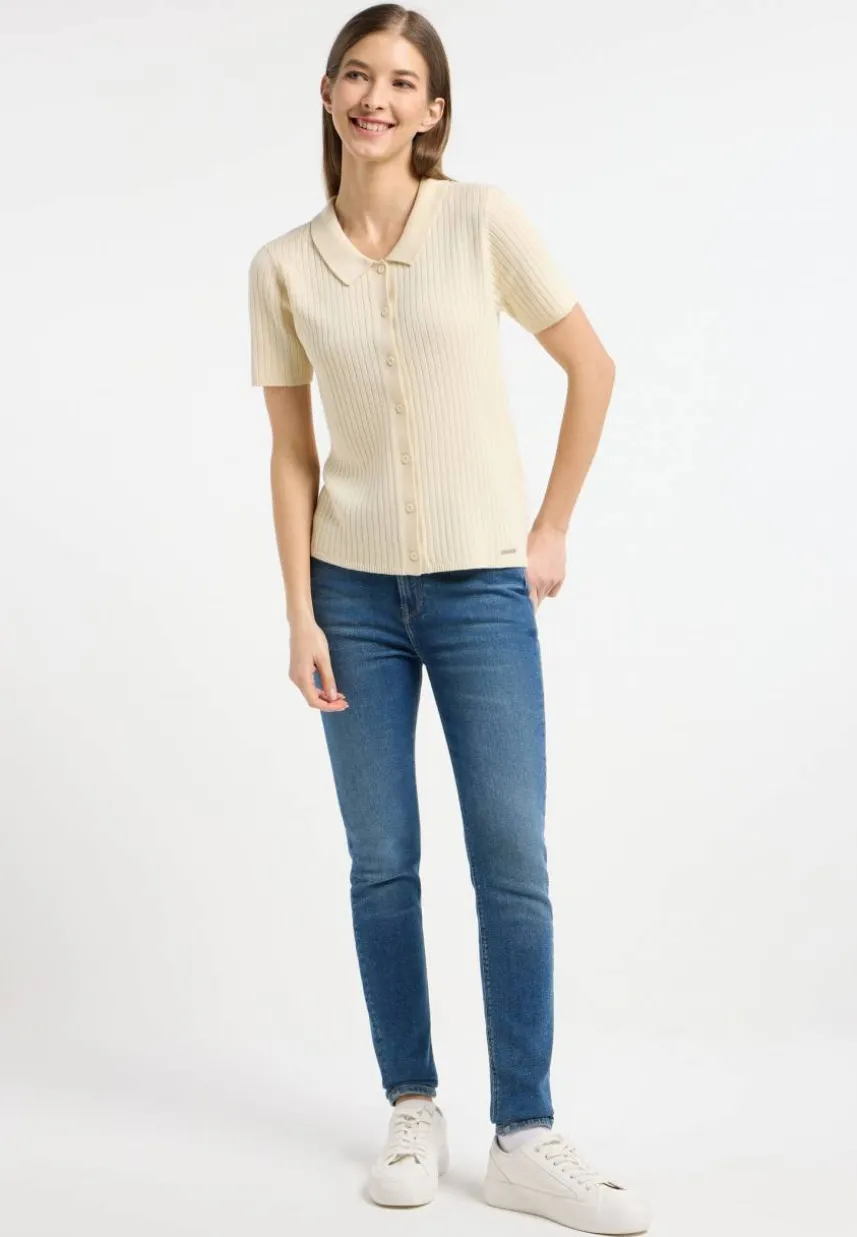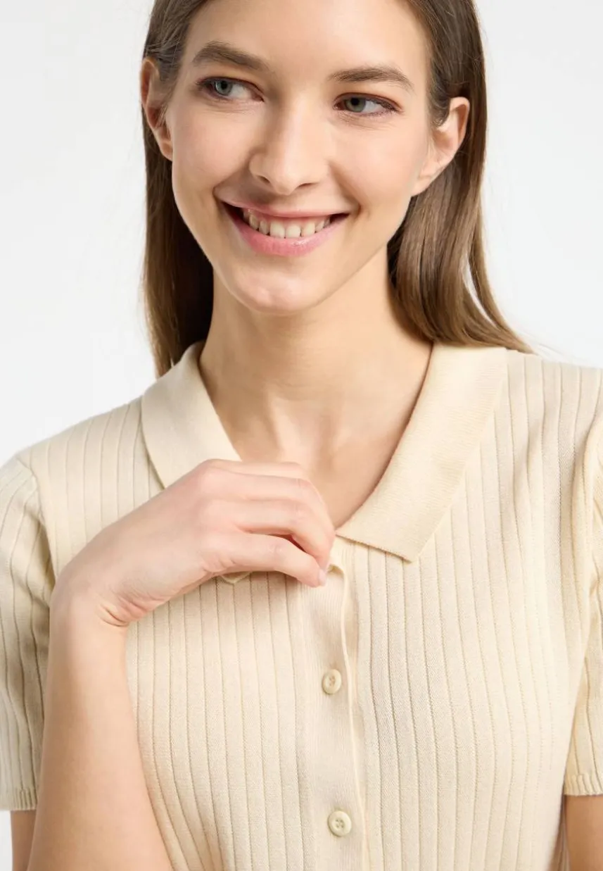 • Durchgehende Knopfleiste und klassischer Polokragen
