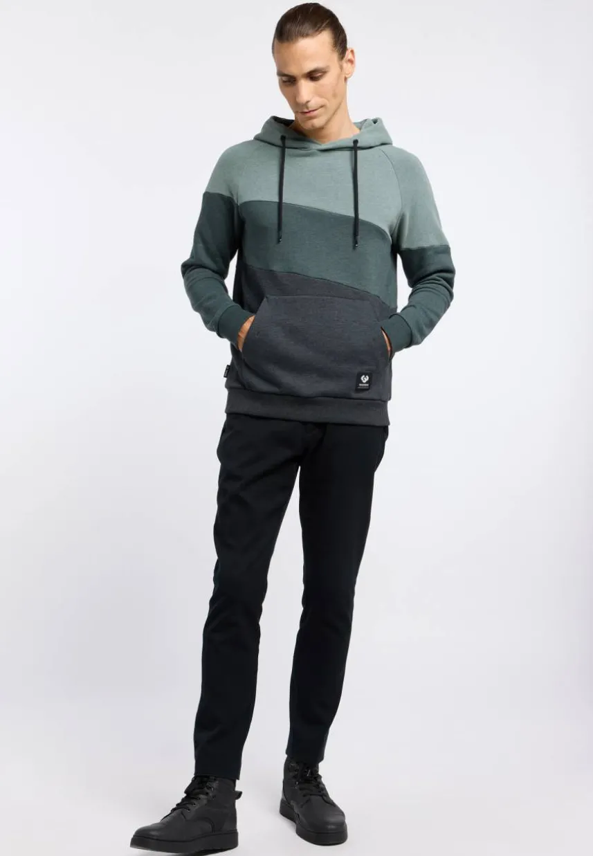Mit dem veganen Hoodie ‚TRISO‘ von ragwear stellst Du ganz einfach einen sportlichen Casual-Look auf die Beine. Das dreifarbige Color Blocking-Design gibt Dir das gewisse Extra. Die weiche, hochwertige Qualität präsentiert sich mit Kapuze mit Kordel und aufgesetzter Kängurutasche. Dezente Label-Applikationen runden den modischen Sweater charakteristisch ab.