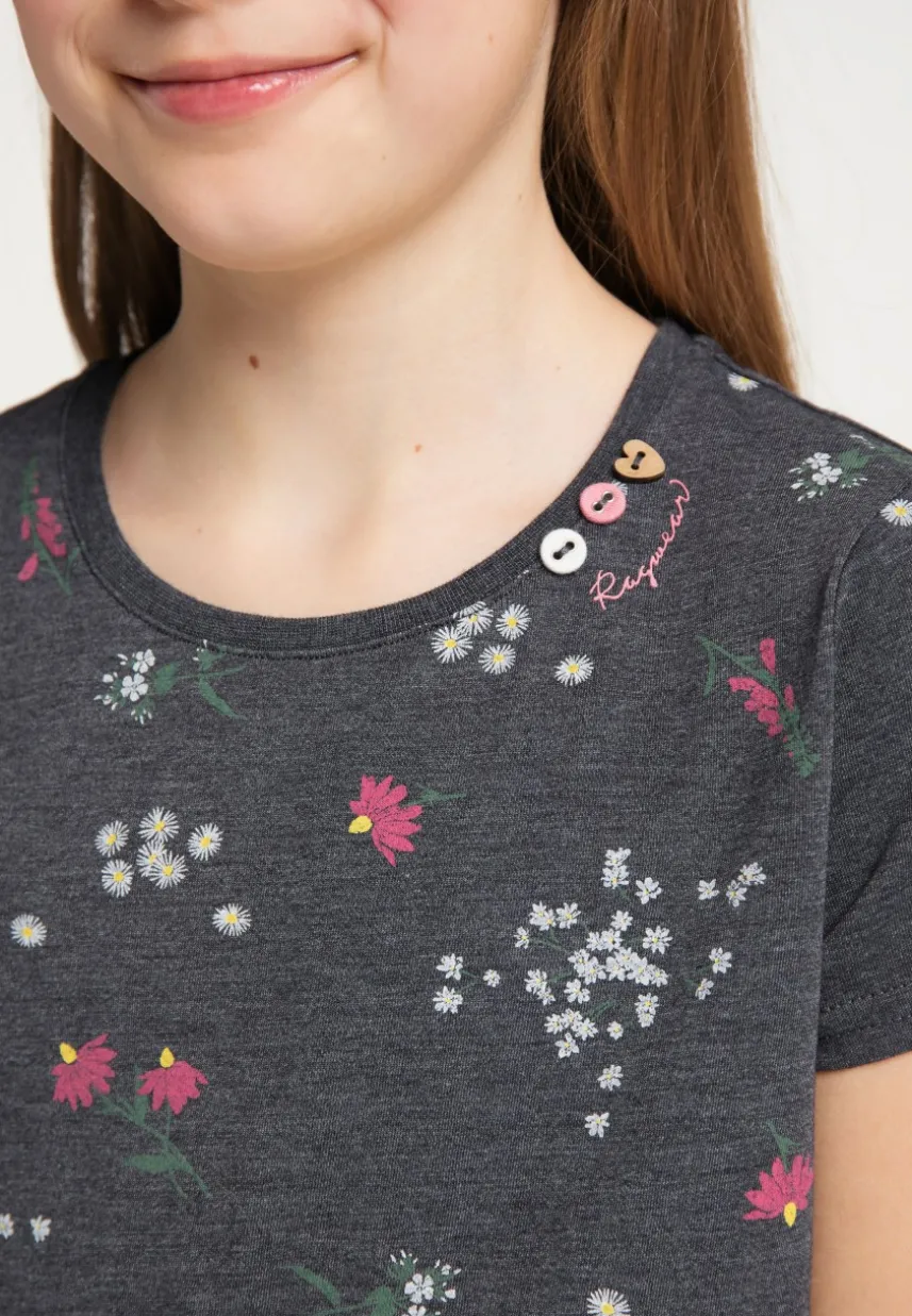 Das ragwear T-Shirt ´VIOLKA FLOWERS` bringt den Sommer mit! Mädchen werden das süße Blumenmuster lieben. Dazu bietet das vegane T-Shirt angenehme Trageeigenschaften wie einen bequemen Schnitt und ein wunderbar weiches Material. Abgerundet wird das Ganze von ragwear-typischen Details wie dem Logo-Schriftzug und Dekoknöpfen am Rundhalsausschnitt und dem Label-Patch am Ärmel. Kombinieren lässt sich das schöne T-Shirt ganz einfach zB. mit Leggins oder Rock.