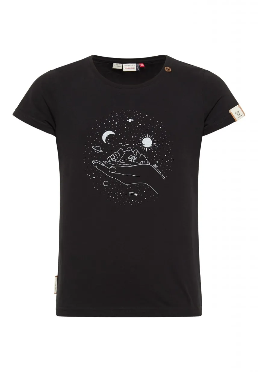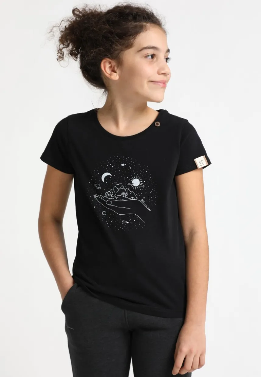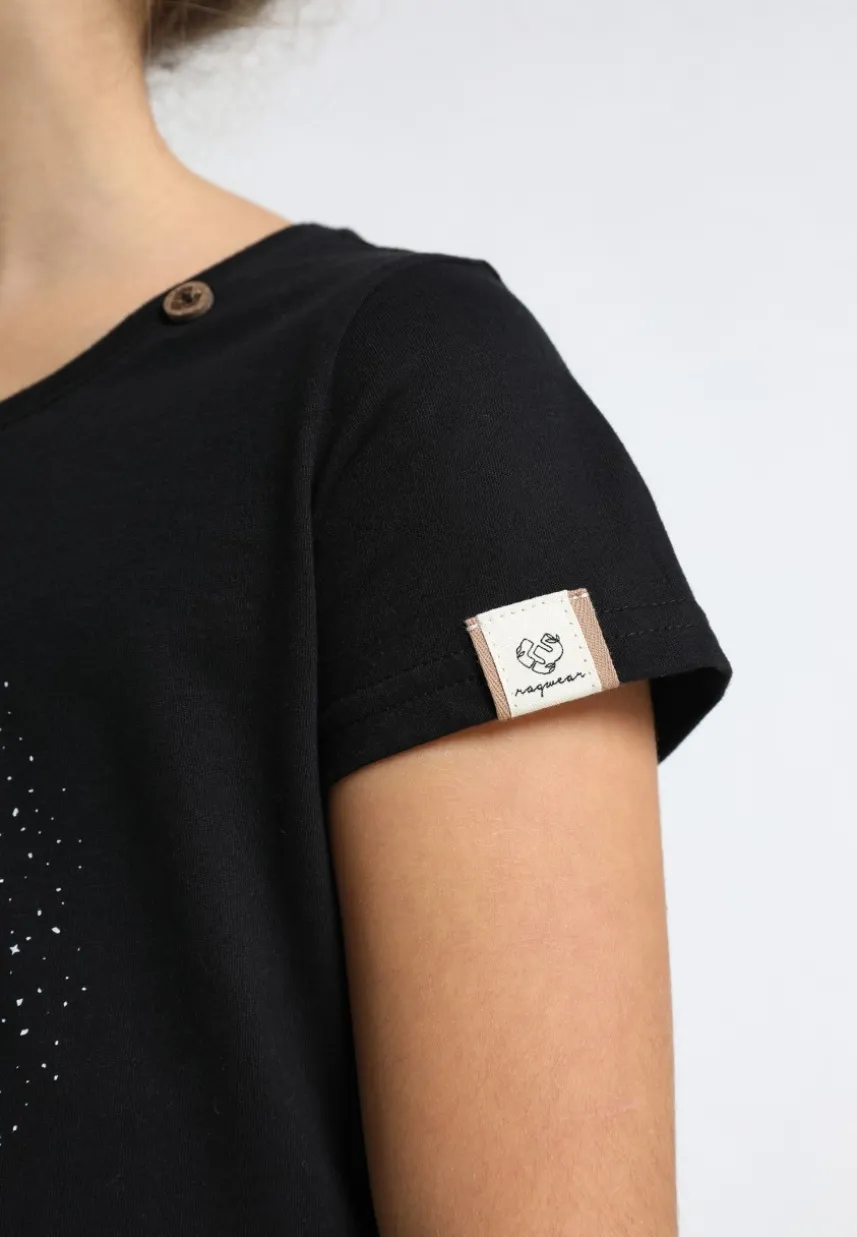 Das einfarbige T-Shirt ´VIOLKA PRINT ORGANIC` von ragwear ist nicht nur nachhaltig, sondern auch vegan. Der schöne Druck auf der Brust wertet jedes Outfit auf. Die handgezeichneten Illustrationen zeigen unsere Liebe zu Welt und Natur. Egal wer, wie, wo oder wann – die bequeme Passform und die angenehm weiche Bio-Baumwolle machen alles mit. Typische Details sind der Label-Patch am kurzen Ärmel und ein kleiner Zierknopf am Rundhalsausschnitt.