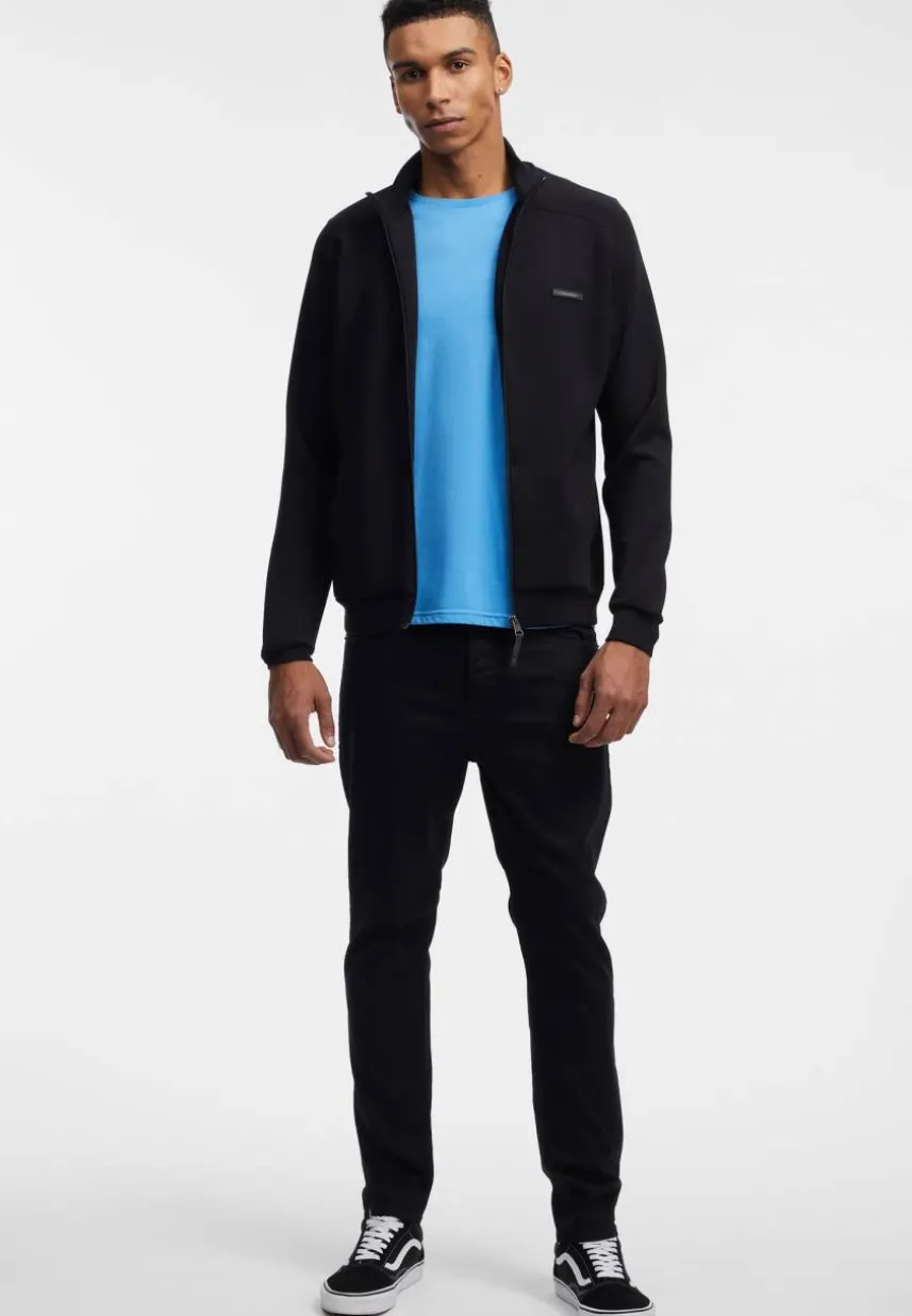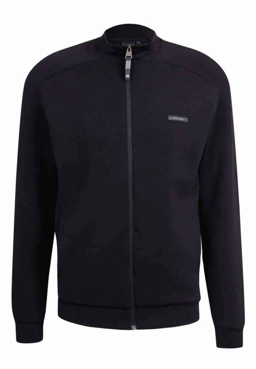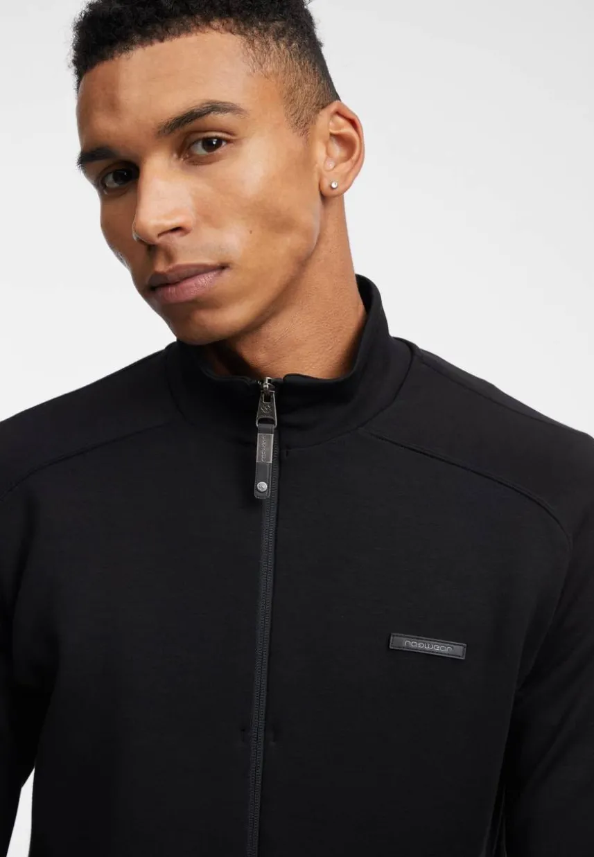 • Vegane sportliche Sweatjacke mit hohem Stehkragen und reflektierenden Etiketten