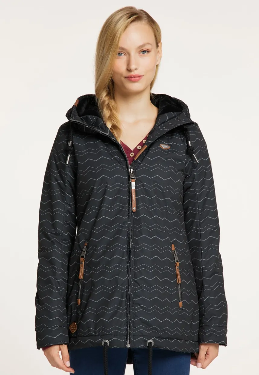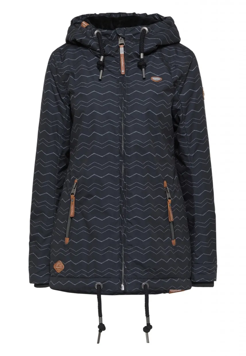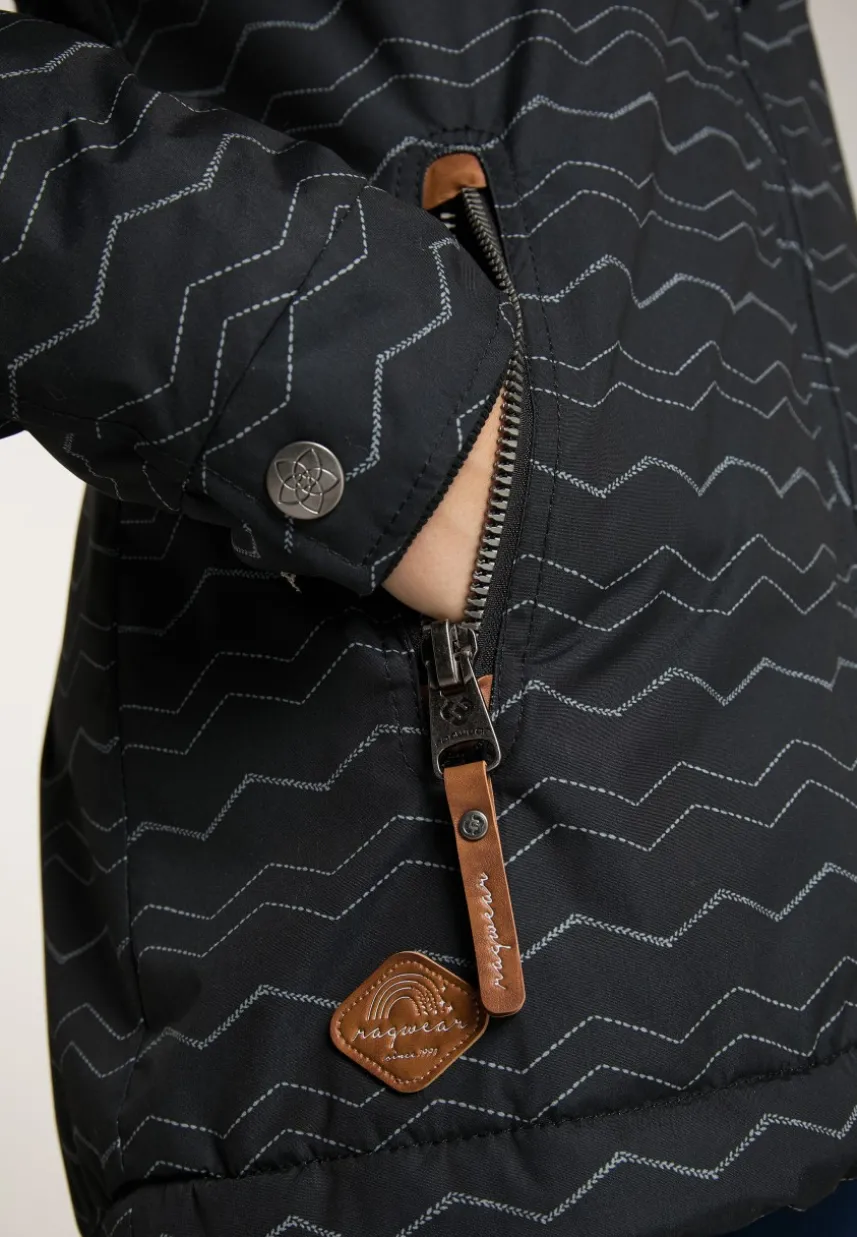 Die vegane Jacke ´ZUZKA CHEVRON` von ragwear ist mit ihrem Zickzack-Print ein toller Hingucker. Der leicht ausgestellte, etwas längere Schnitt und das wasserfeste Material der gefütterten Jacke schützen Dich vor Witterung und Kälte. Eine hochgeschnittene Kapuze mit kuscheligem Teddy-Futter, elastische Bündchen an den Ärmelabschlüssen, sowie seitliche Reißverschlusstaschen sind praktische Features. Im Rücke kreiert ein Gummi eine schöne Silhouette. Unsere typischen, dicken Kordeln sind in der Kapuze und im Saum zu finden.